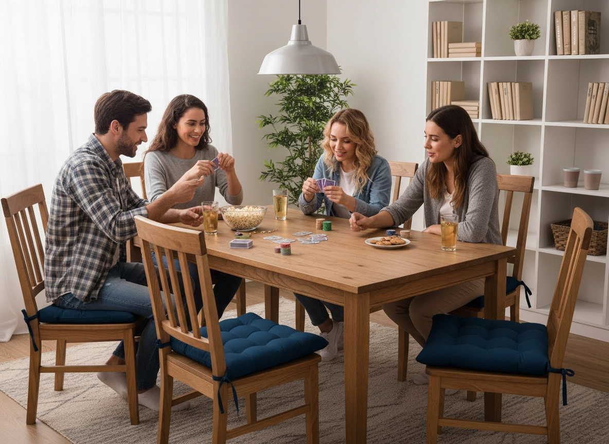 Mehko polnilo iz poliestrskih vlaken zagotavlja prijetno in stabilno sedenje skozi ves dan – idealno za jedilno mizo in balkon.