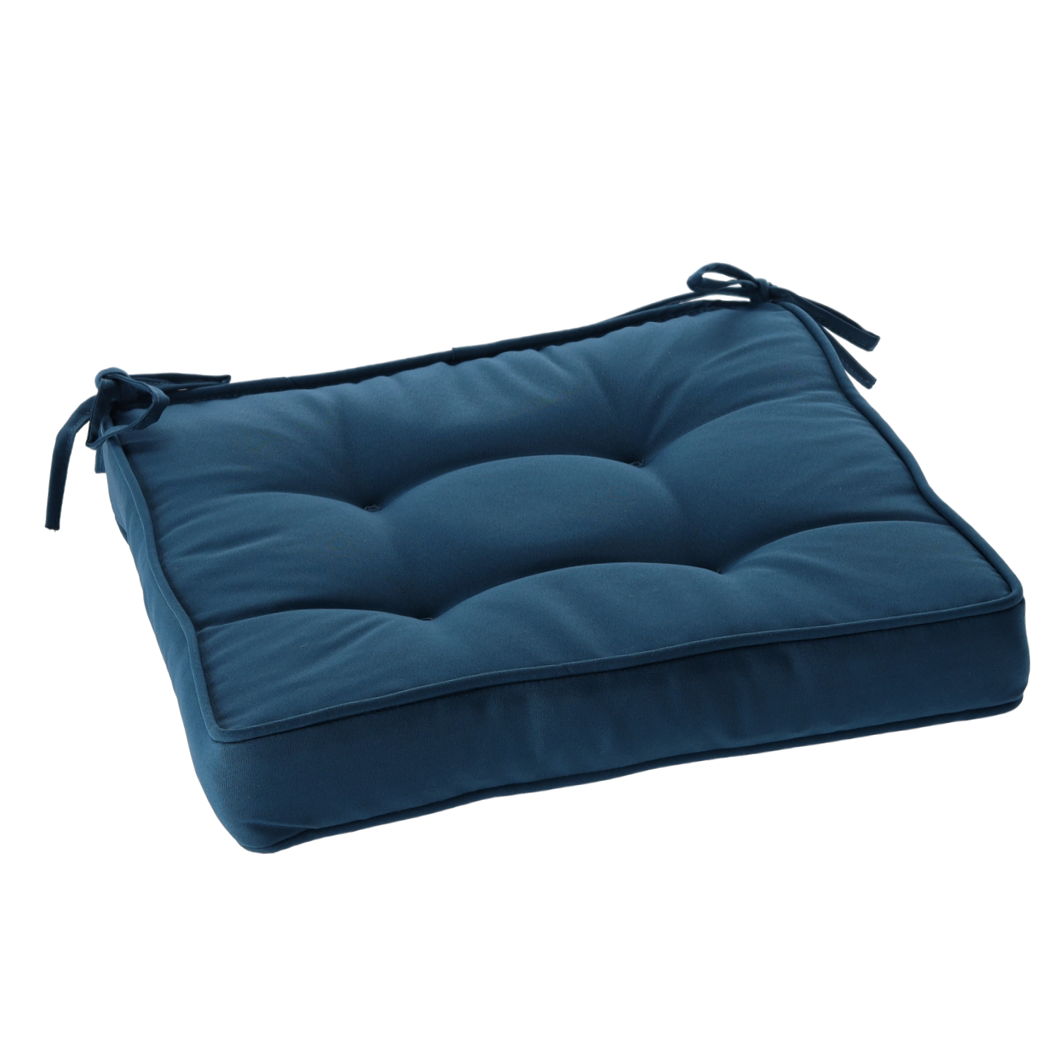 Praktične vrvice za vezanje na stol preprečujejo zdrsavanje, zato bo blazina ostala natančno tam, kjer jo potrebujete. Moder odtenek zlahka uskladite z lesenim pohištvom in sodobnim interierjem, na vrtnih sedežih pa ustvari prijetno, udobno vzdušje.