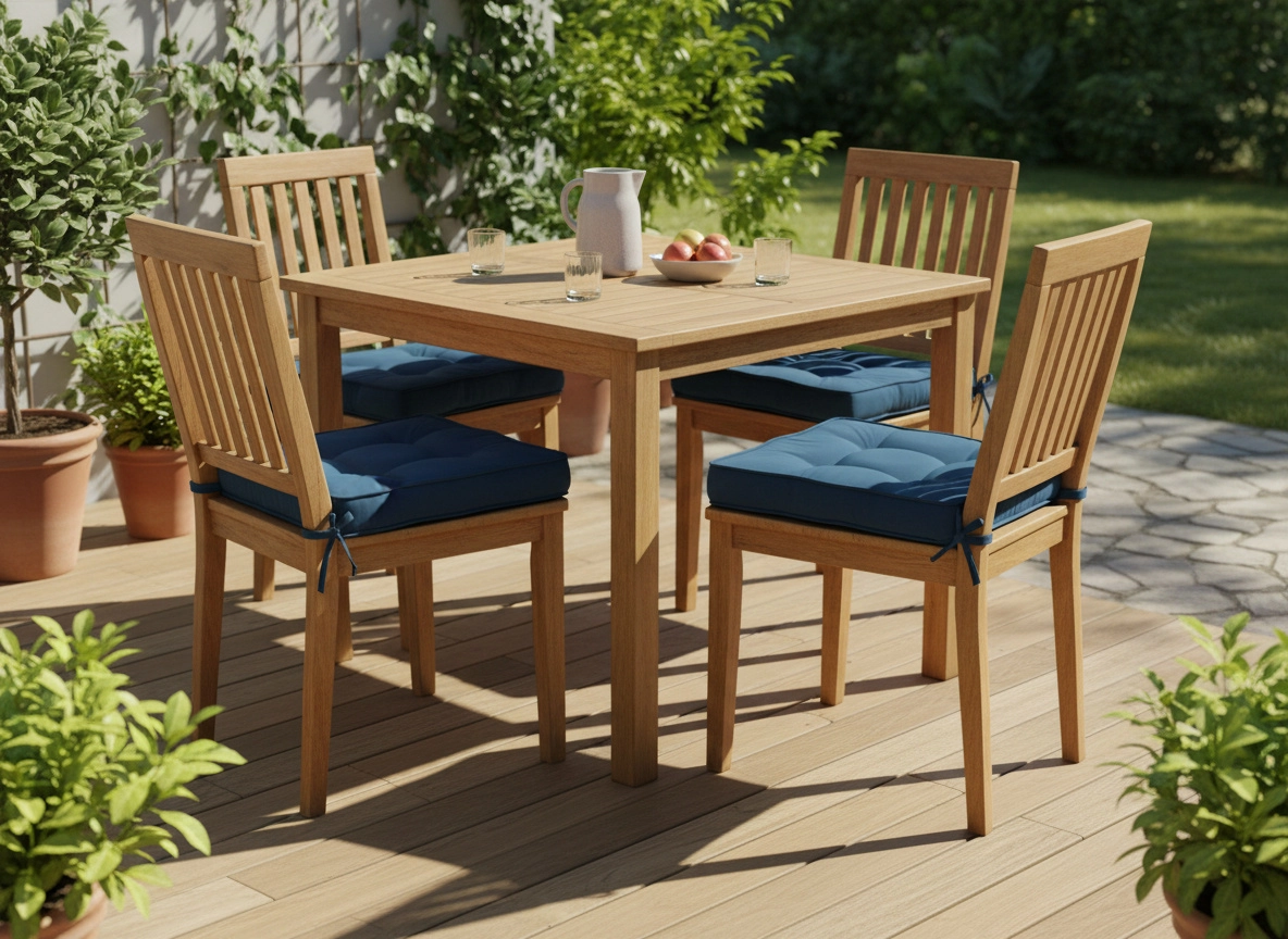 Odporen poliestrski prevlek in brezčasna modra barva sta odlična za jedilnico, kuhinjo in vrtno sedišče.