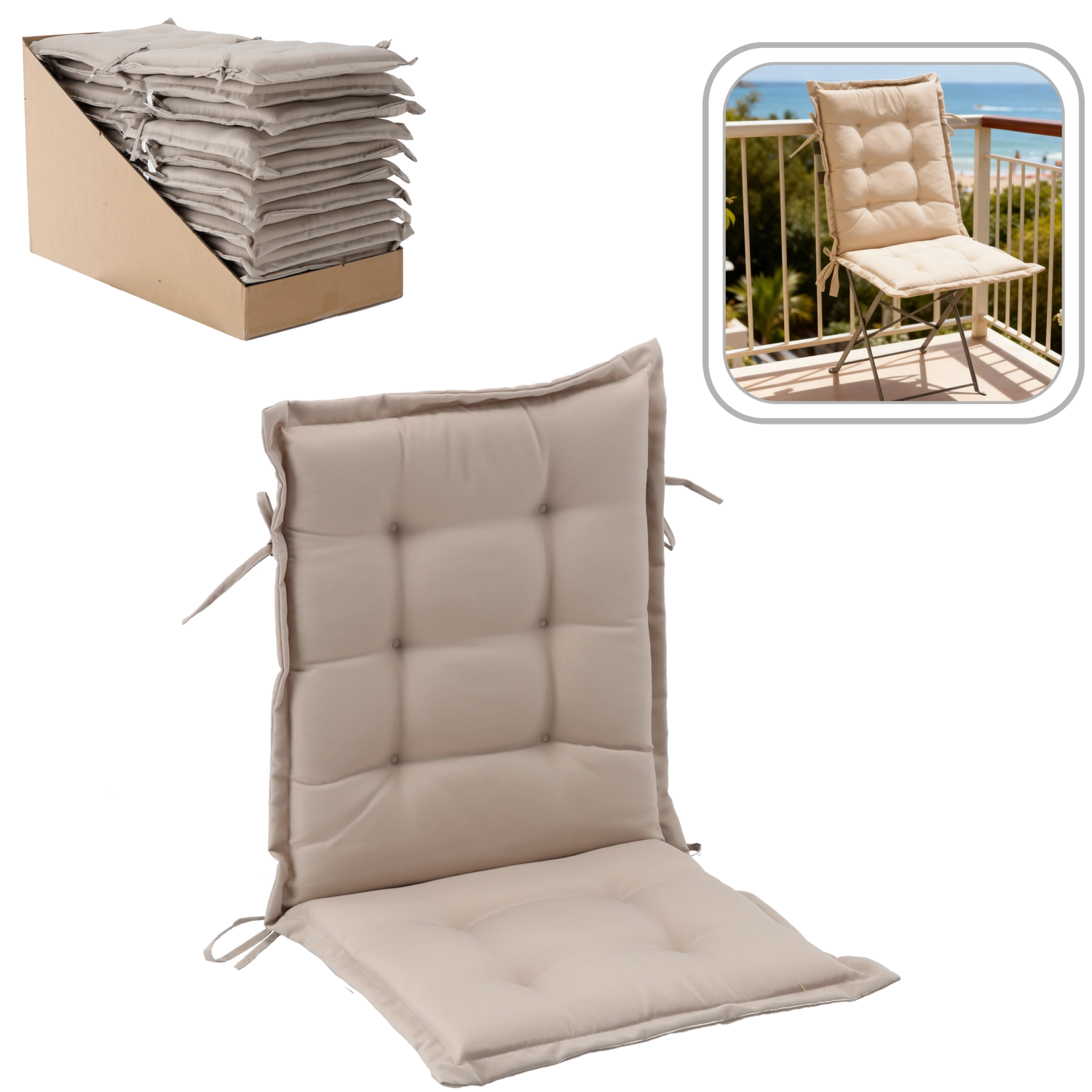 Univerzalna blazina za stol z naslonom v naravni barvi spremeni običajno sedenje za mizo, na terasi ali v paviljonu v prijetno doživetje. Mehko oblazinjenje s kakovostnim vlaknom nudi oporo sedišču in hrbtu, medtem ko vzdržljiva poliestrska prevleka olajša vzdrževanje.