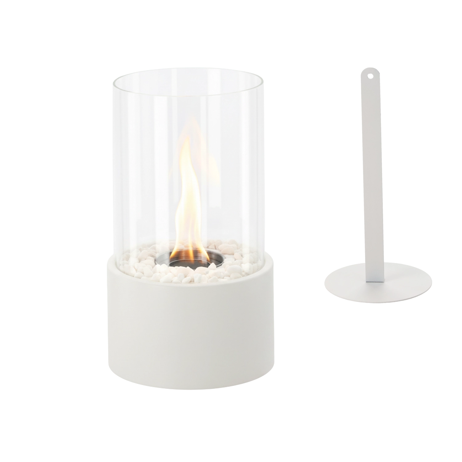 Njegova čisto bela estetika poudari vsak slog interierja – od skandinavskega do sodobnega minimalizma. Kompaktne mere 16 × 16 × 28 cm omogočajo postavitev tudi v manjše prostore in uživanje v mirnem, pomirjujočem plapolanju plamena.