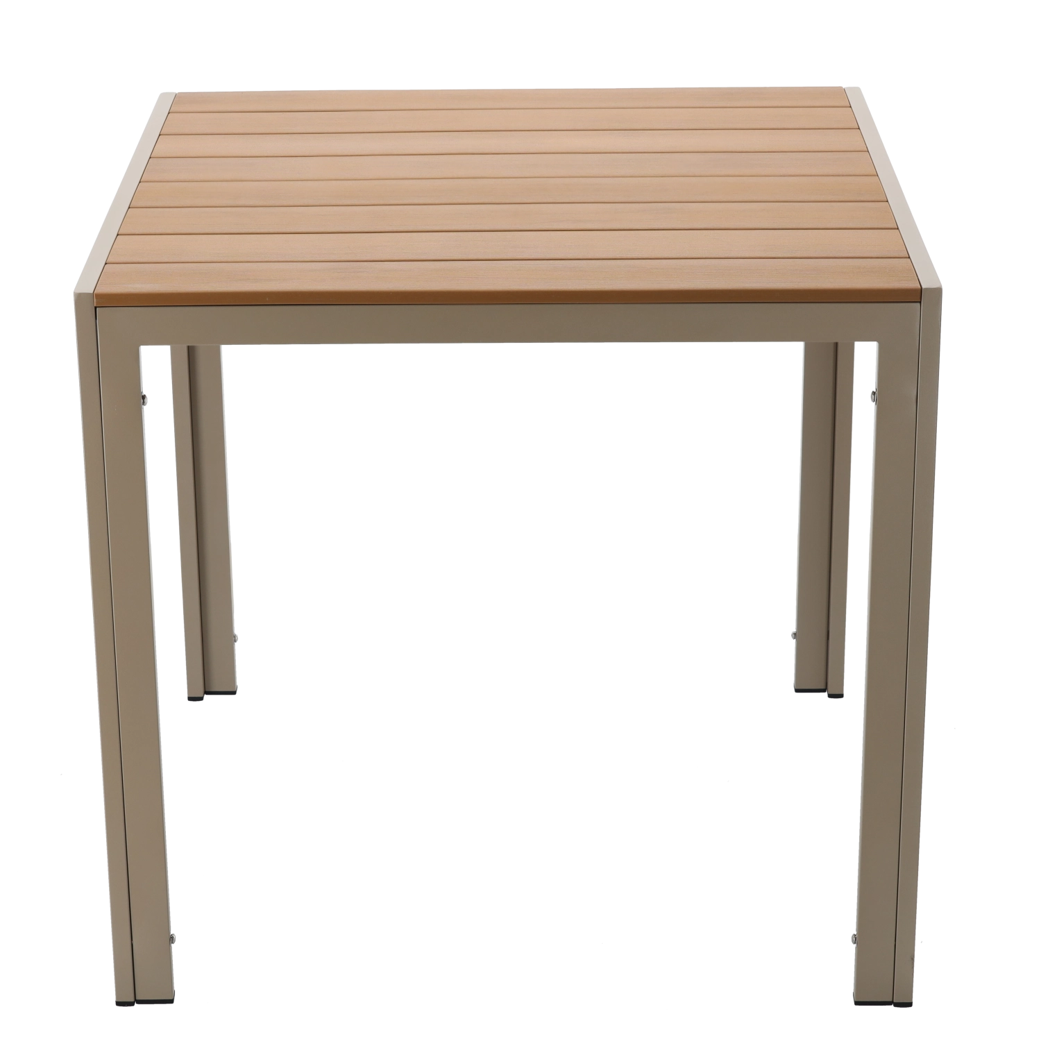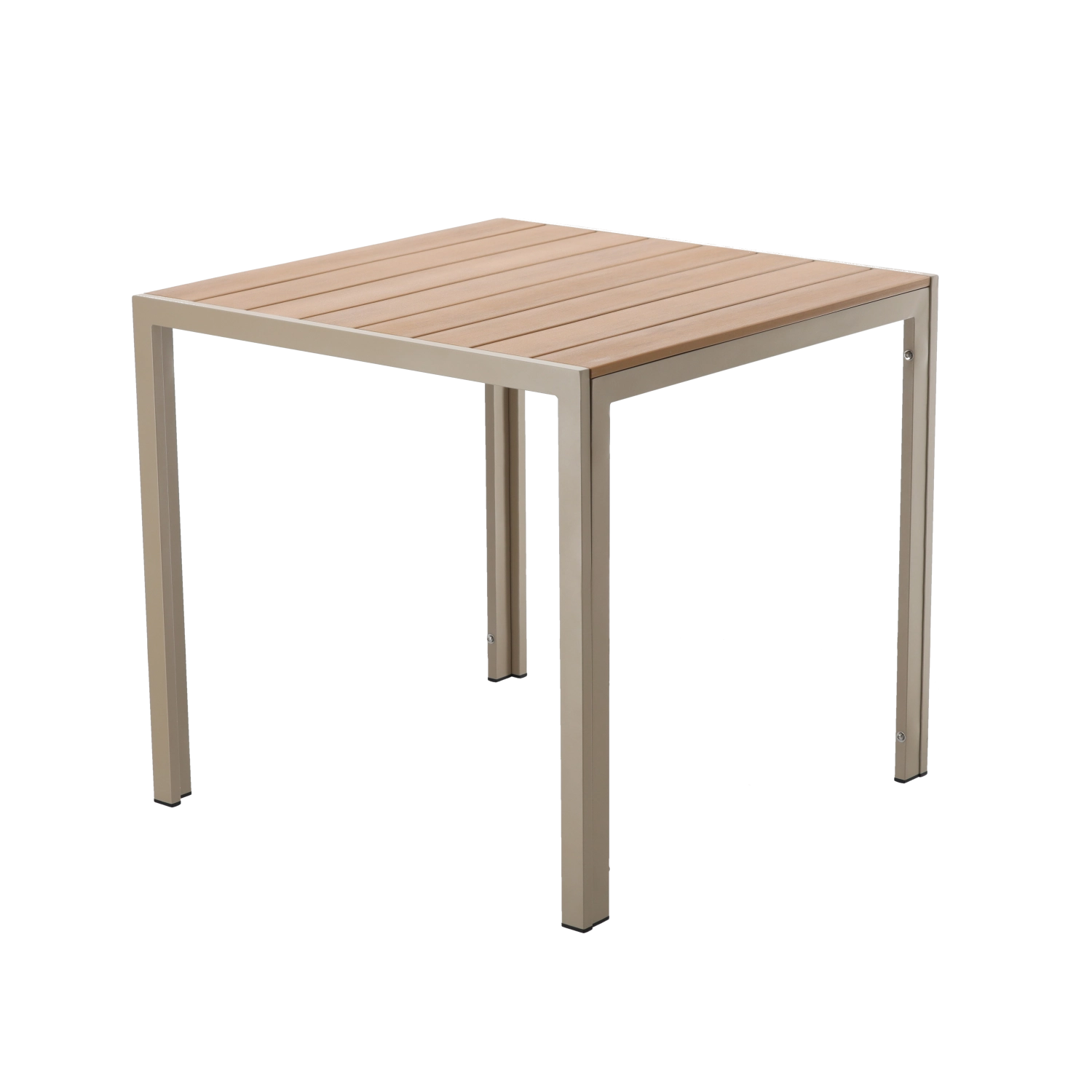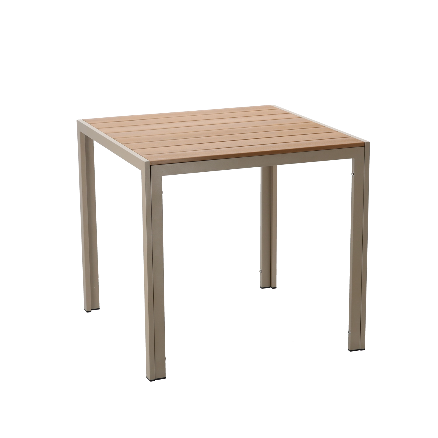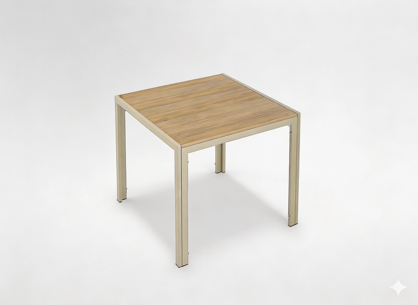 Zaradi kvadratnega formata 80 × 80 cm je miza popolna za manjše prostore in intimna druženja. Stabilen aluminijast okvir ter kakovostni varjeni spoji in nerjavni vijaki zagotavljajo dolgo življenjsko dobo in trdnost pri vsakodnevni uporabi.