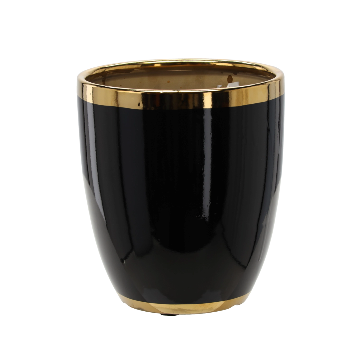 Poživite svoj dom s stilskim dodatkom. Ta keramični okrasni lonček v mat črni izvedbi z zlatim obročkom poudari lepoto vaših rastlin ter hkrati zaščiti notranji lonček pred poškodbami in nečistočami. Minimalističen videz se odlično poda v dnevno sobo, predsobo in pisarno.