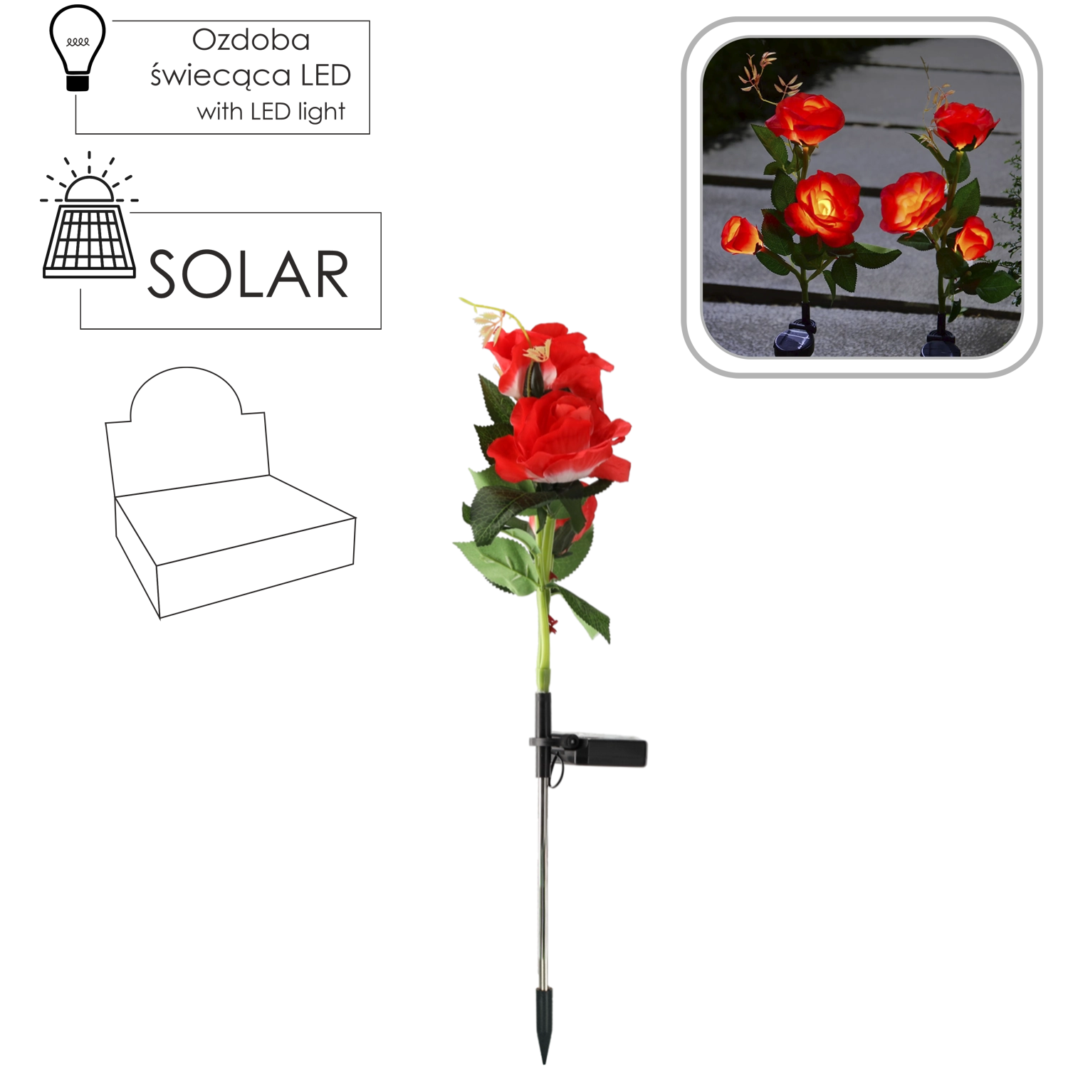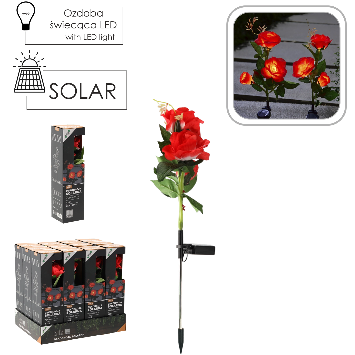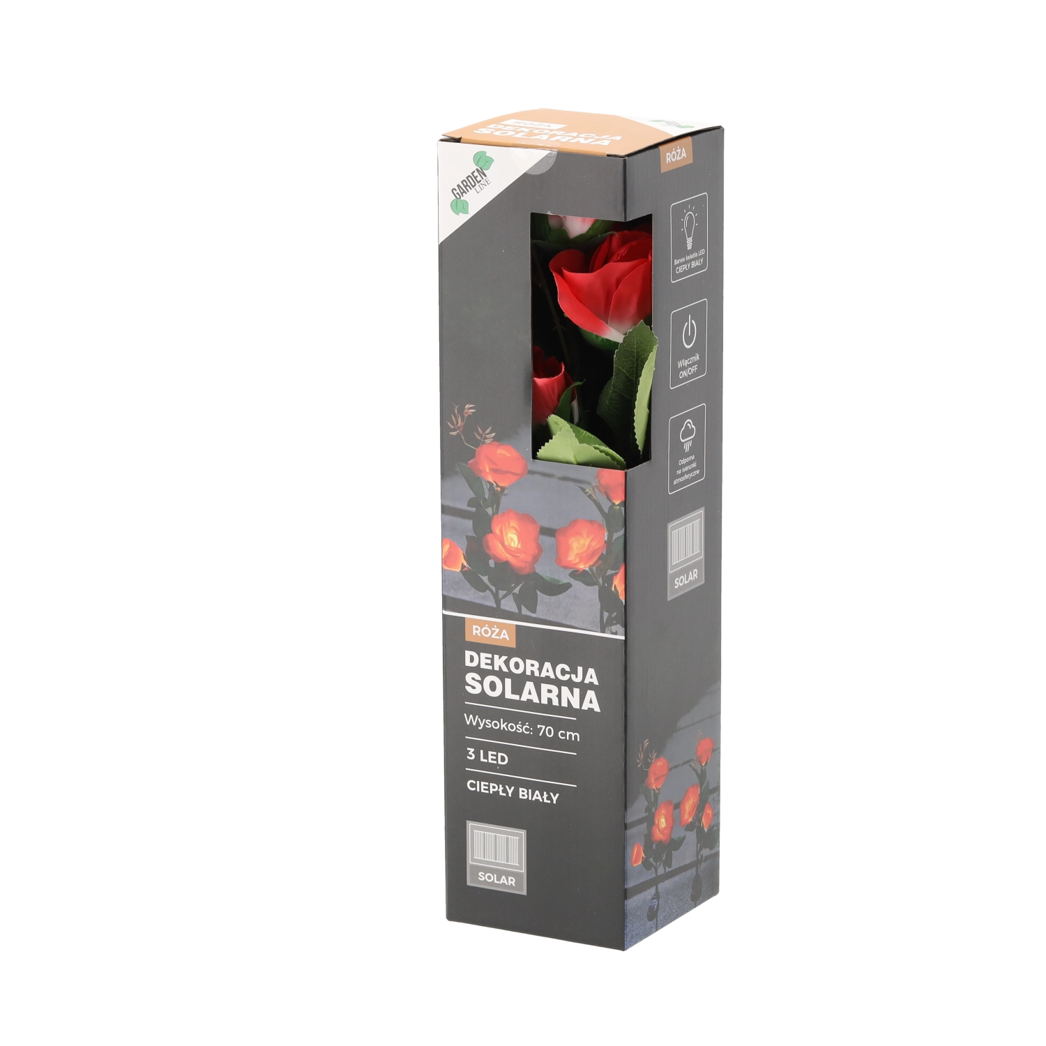 Dekorativna sončna svetilka v obliki vrtnice z višino 70 cm bo vašo vrtno okolico osvetlila z nežno svetlobo. Ponuja 3 cvetove s toplo belo barvo svetlobe, samodejno polnjenje s soncem in varčen način delovanja zahvaljujoč LED tehnologiji. Zaradi stopnje zaščite IP44 je primerna za zunanjo uporabo skozi celotno sezono.