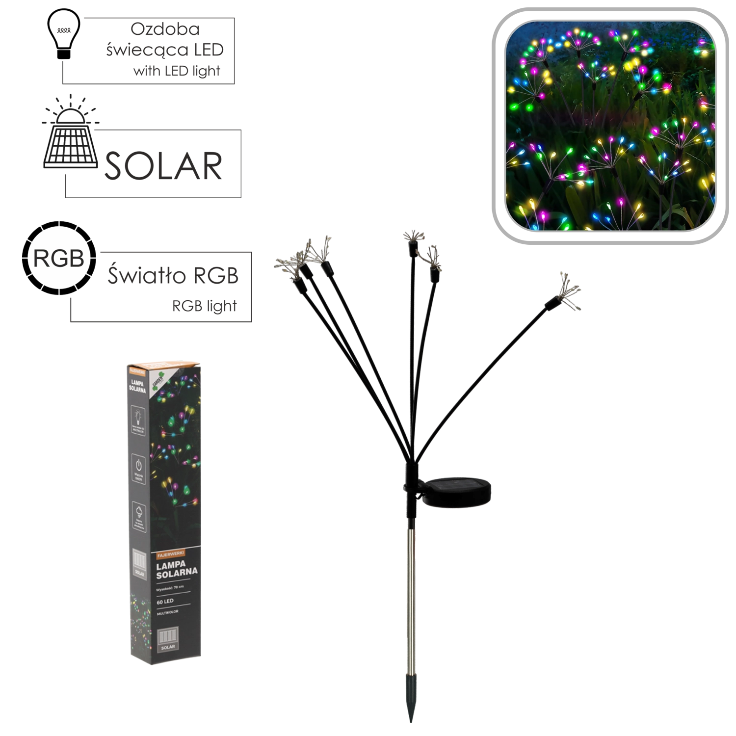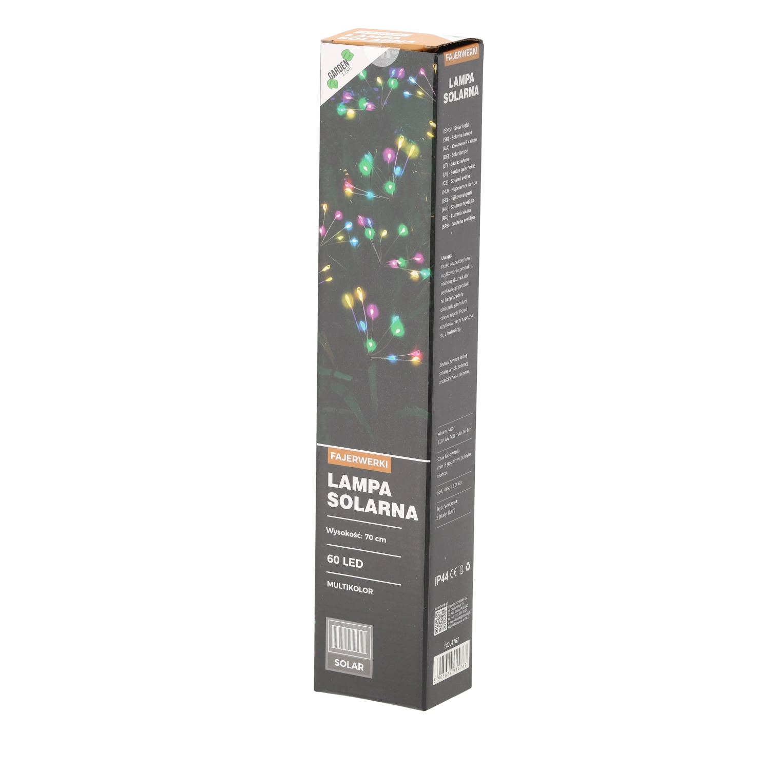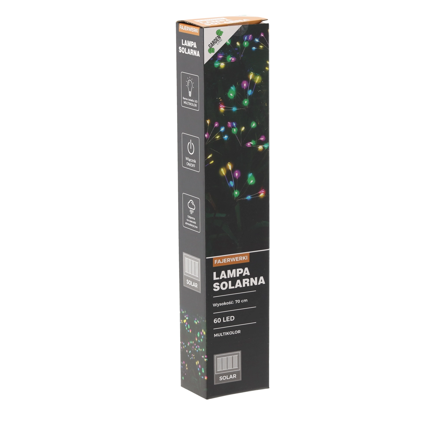 Ta dekorativna solarna svetilka z večbarvnimi LED diodami ustvarja impresiven učinek ognjemeta, ki vašemu zunanjemu prostoru doda čarobno vzdušje. Zahvaljujoč solarnemu napajanju je brezžična, varčna in ne zahteva nobene zapletene namestitve.