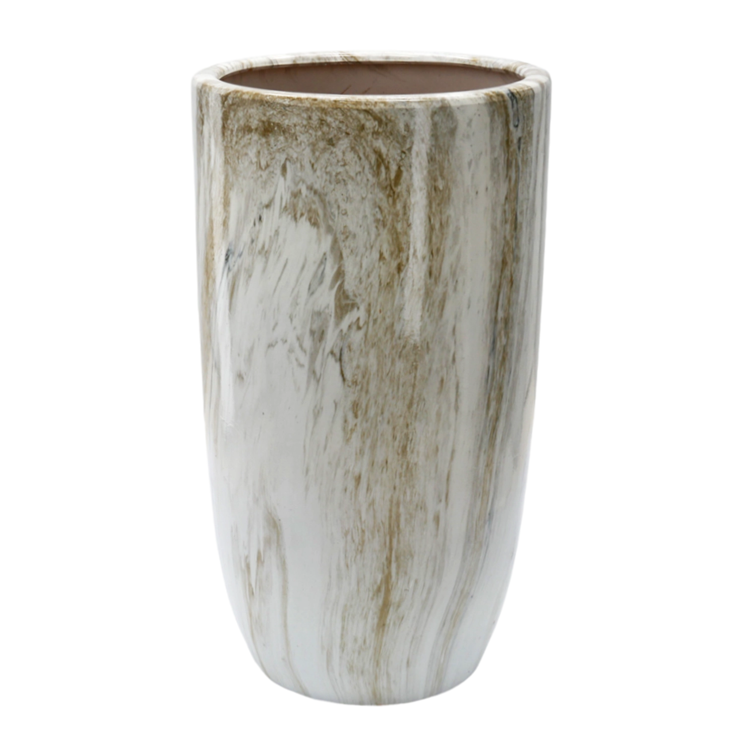 Stilski keramični okrasni lonček z marmornim učinkom v velikosti 40 × 40 × 74 cm bo vašemu prostoru dodal luksuzen videz. Izdelan je iz kakovostne keramike, je odporen, enostaven za čiščenje in primeren za notranje in zunanje prostore. Idealen je za večje rastline, saj jim nudi stabilno in prostorno zavetje.