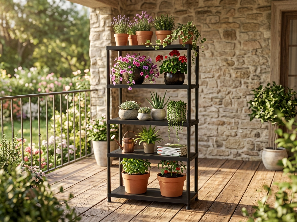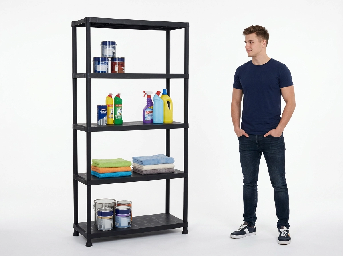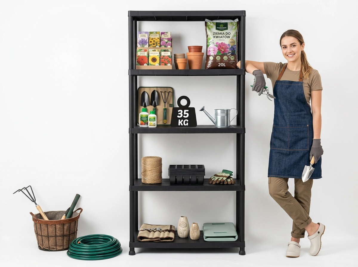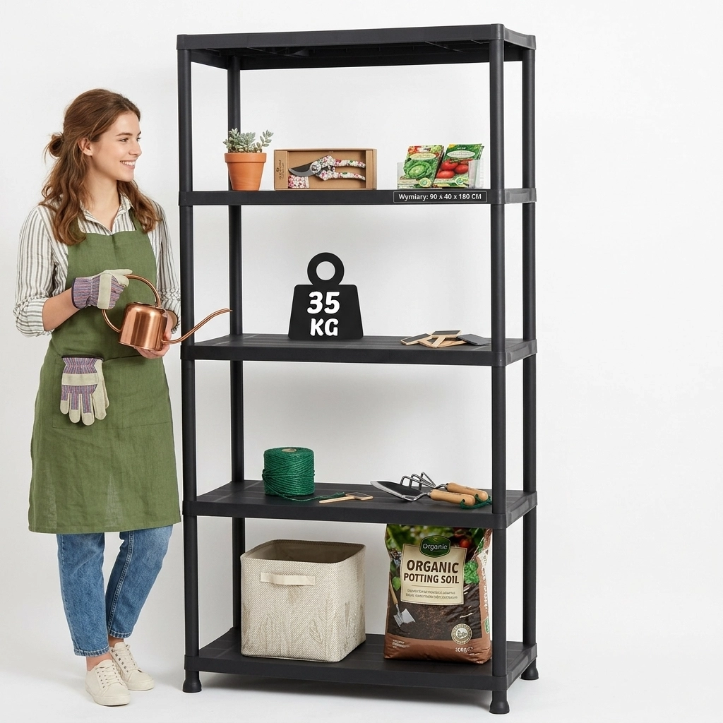 Maksimizirajte shranjevalni prostor z univerzalnim plastičnim regalom z dimenzijami 90 × 40 × 180 cm. Zahvaljujoč robustni konstrukciji in nosilnosti 35 kg na polico brez težav shranite orodje, čistila, zaloge in vrtno opremo. Vzdržljiva plastika je odporna na vremenske vplive, zato se regal zanesljivo obnese v garaži, kleti in pokritem zunaj.