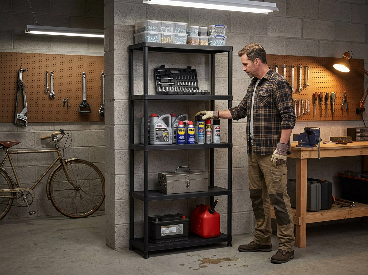 Vzdržljiva plastika je odporna proti vlagi in vremenskim vplivom, zato je primerna za garažo, klet in pokrite zunanje prostore.