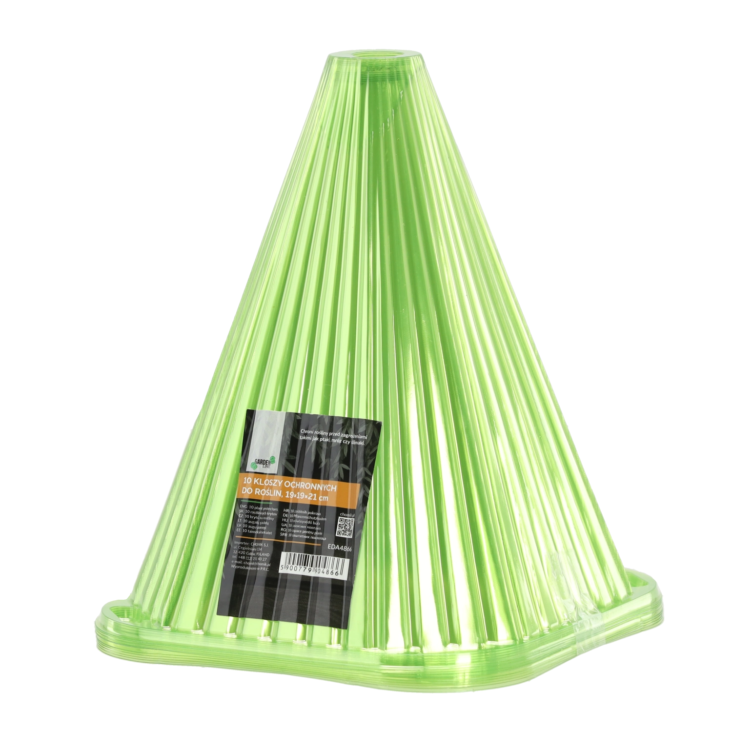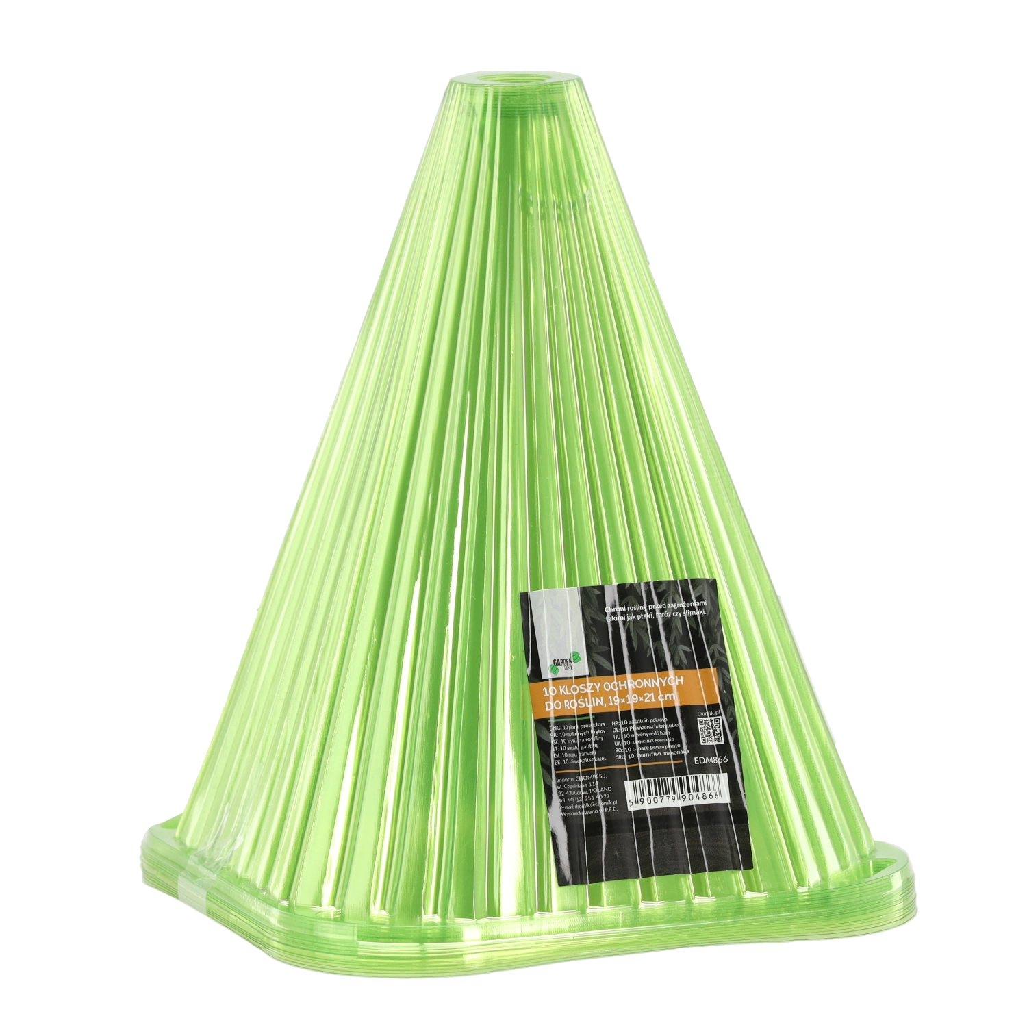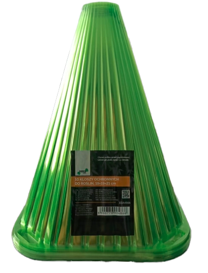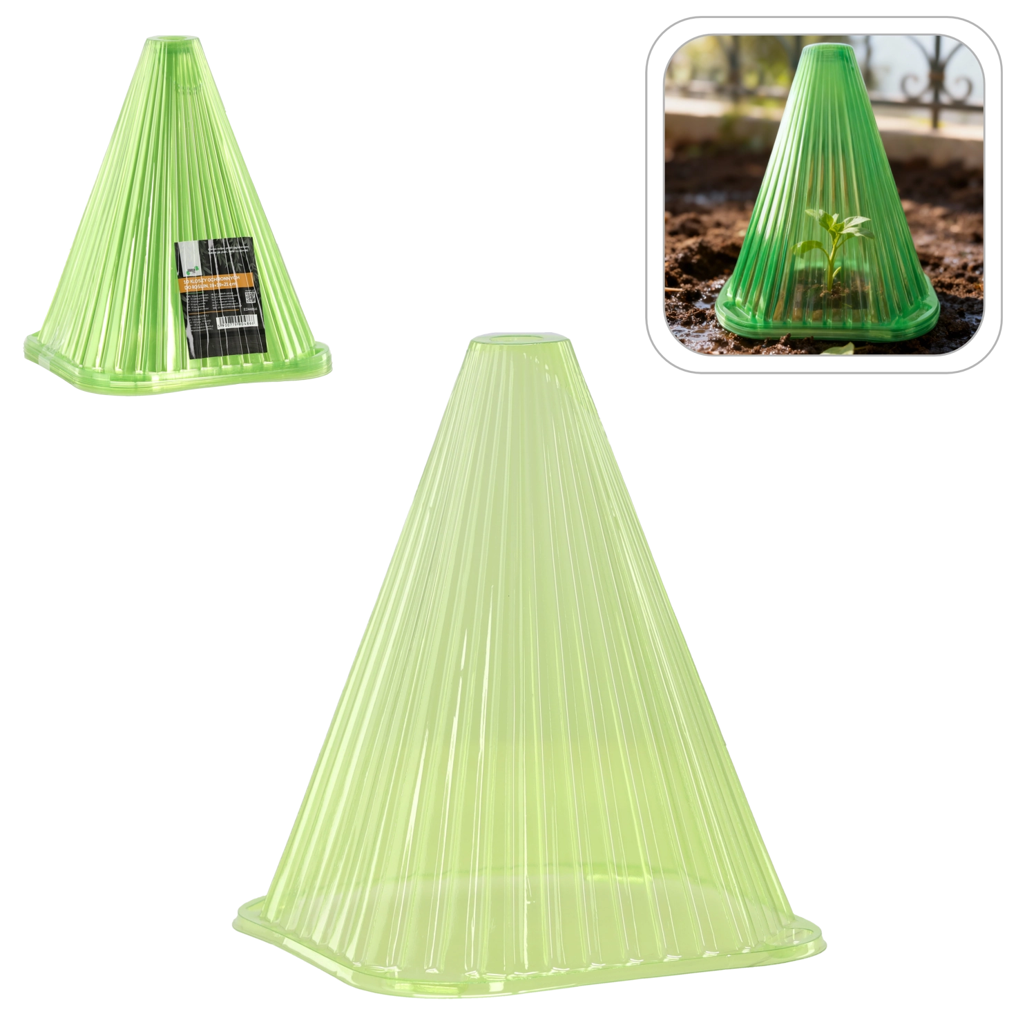 Stožčasta oblika in prozorna plastika zadržujeta toploto in vlago ob rastlinah, kar spodbuja kalitev in zdrav začetek sadik.