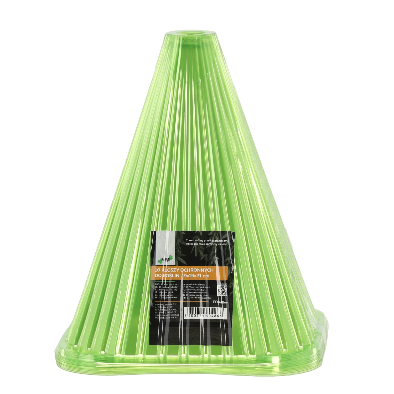 Zaščitite svoje sadike in mlade rastline skozi vse leto s praktičnim kompletom 10 stožčastih pokrovov iz prozorne plastike. Pokrovi ustvarjajo optimalno mikroklimo, nudijo zanesljivo zaščito pred mrazom, vetrom in škodljivci ter zaradi prozornega materiala prepuščajo dovolj svetlobe za zdravo rast. Zgornja odprtina za zalivanje olajša nego brez snemanja pokrova, medtem ko odprtine v vogalih omogočajo čvrsto pritrditev v tla.