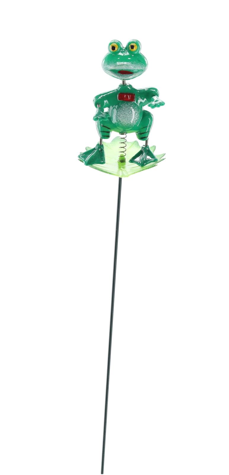 Popestrite gredico, cvetlični lonček ali korito z igrivo figurico žabe na kovinski palici. Zaradi skupne dolžine 50 cm jo zlahka namestite v zemljo in ustvarite takojšnjo popestritev. Vzdržljiv kovinski koničast del zagotavlja stabilnost, barvita plastična figurica doda šarm, univerzalna uporaba v notranjih in zunanjih prostorih pa vam daje svobodo pri aranžiranju.