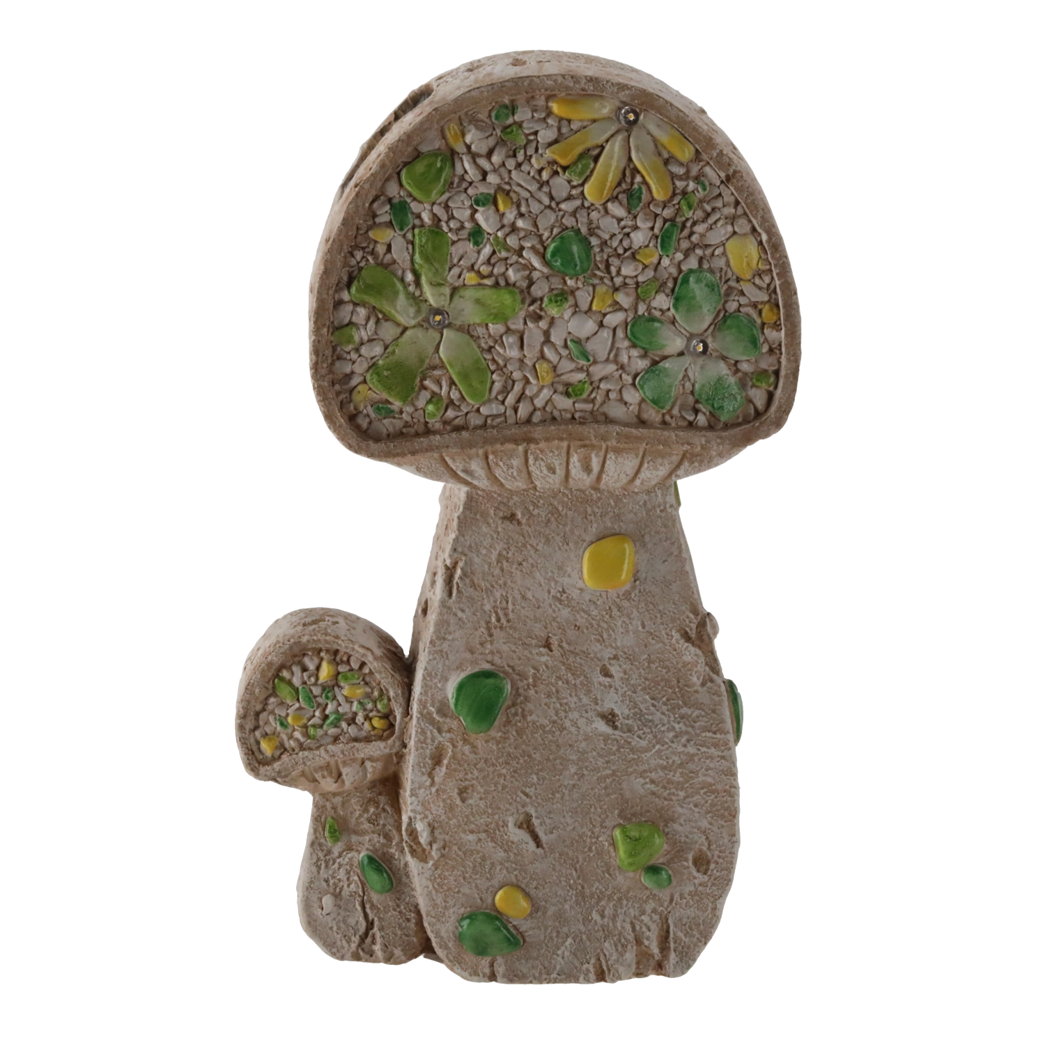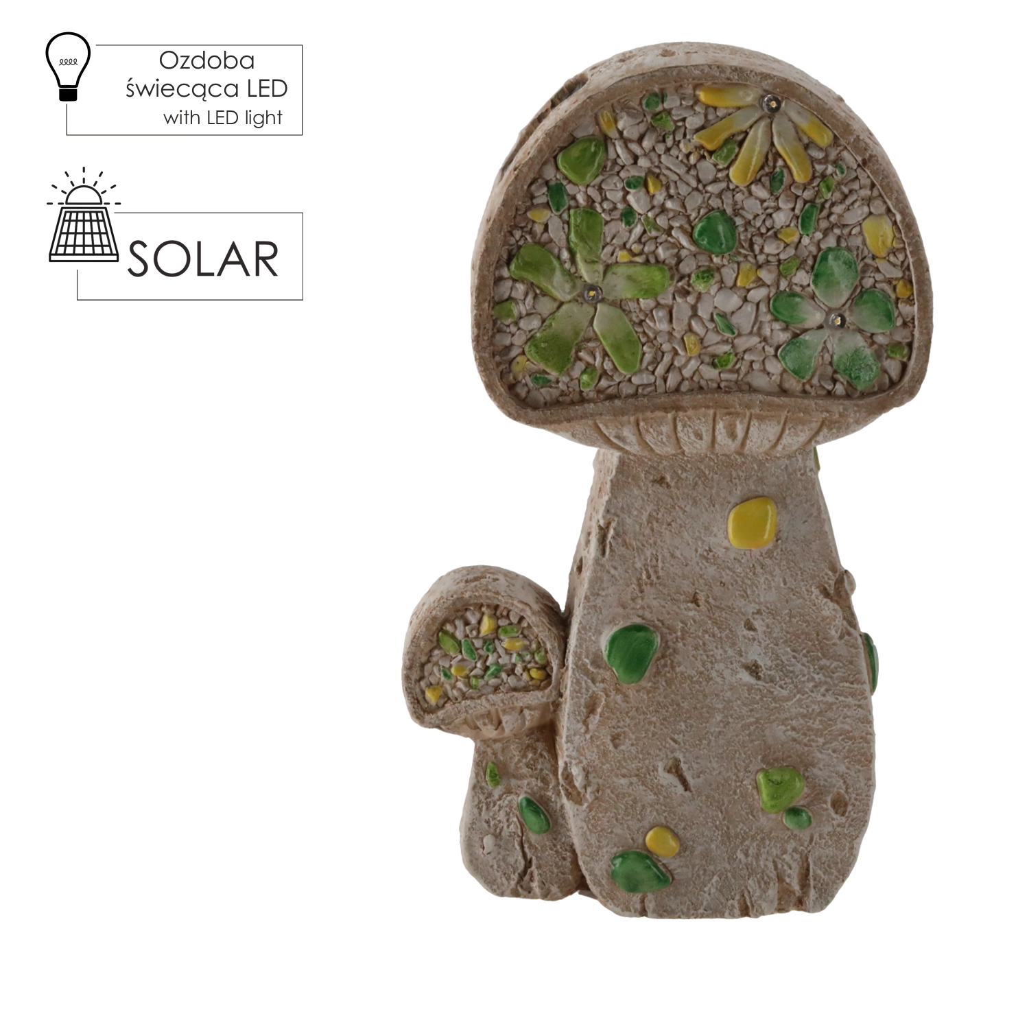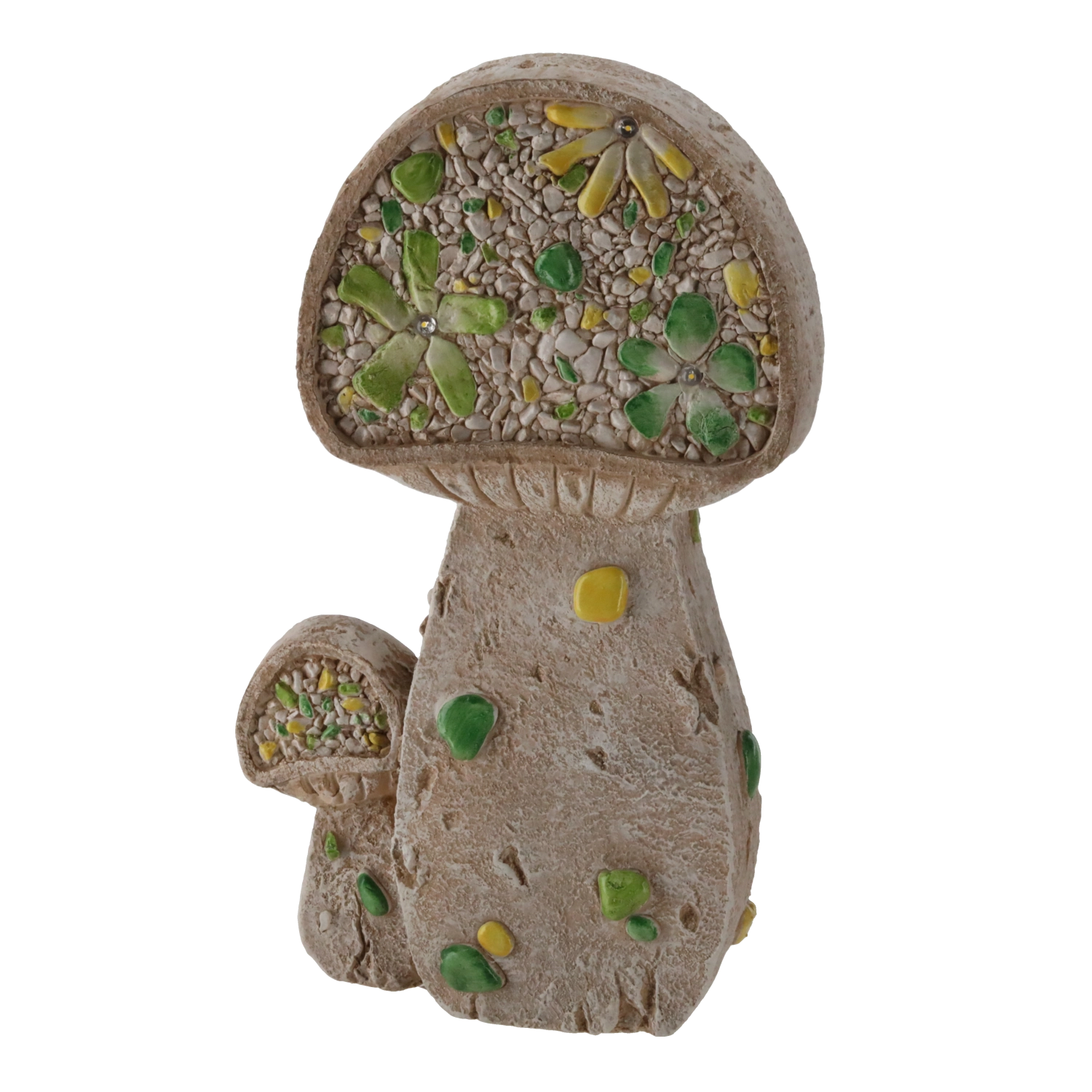 Ta dizajnerska dekoracija gob je odličen poudarek za vrt, teraso ali vhodni prostor. Nežna LED osvetlitev poudarja mozaikaste detajle in v zunanje prostore prinaša prijetno ambientalno svetlobo brez bleščanja. Zahvaljujoč čvrsti konstrukciji in odpornemu premazu se dobro obnese tudi v zahtevnejših zunanjih razmerah.