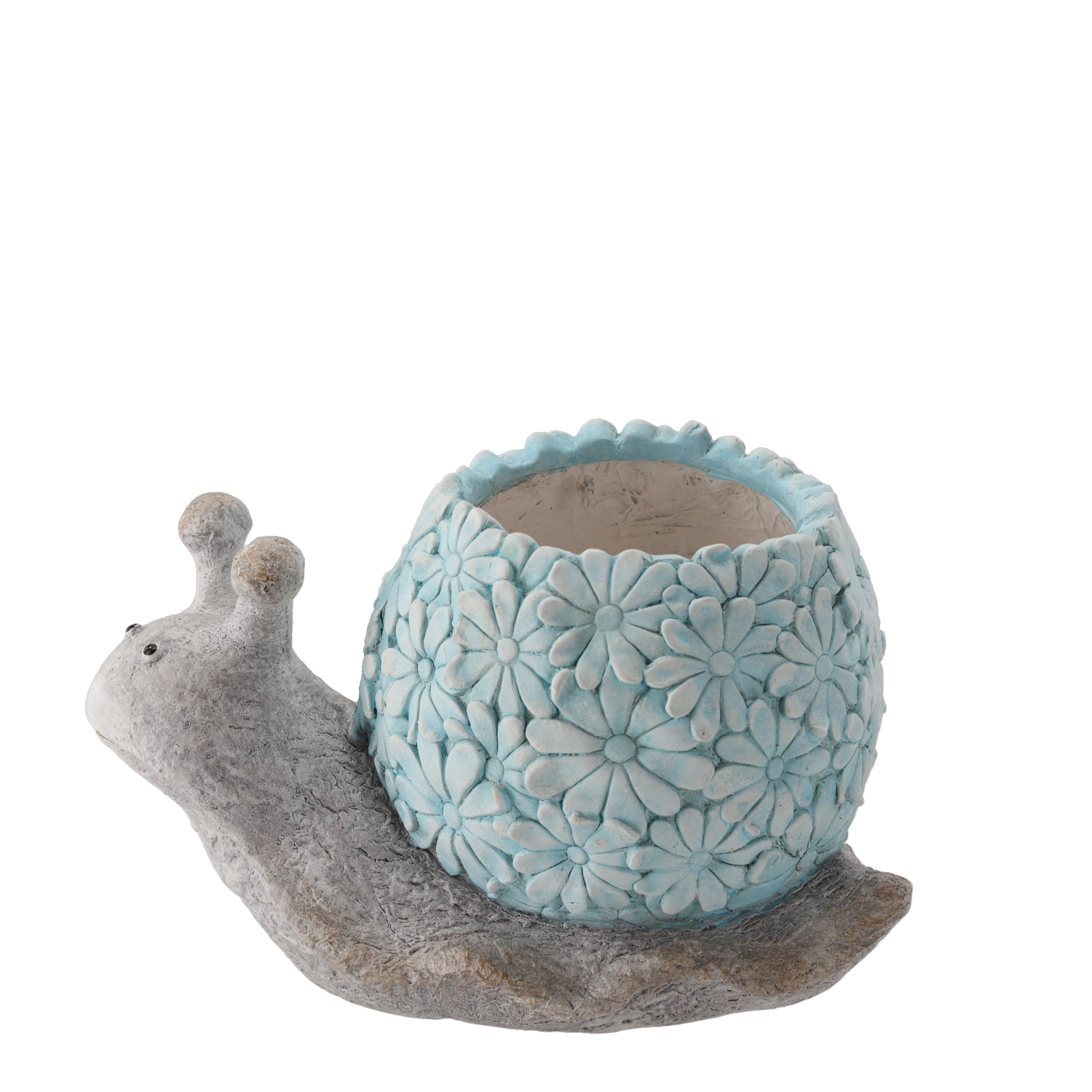 Izviren vrtni cvetlični lonec v obliki polža bo vaši vrtni, terasni ali balkonski ureditvi dodal igriv dekorativni element. Ponuja dovolj prostora za rastline (35 × 21,4 × 21,7 cm), je odporen na vremenske vplive in njegova sveža modra barva takoj poživi okolico.