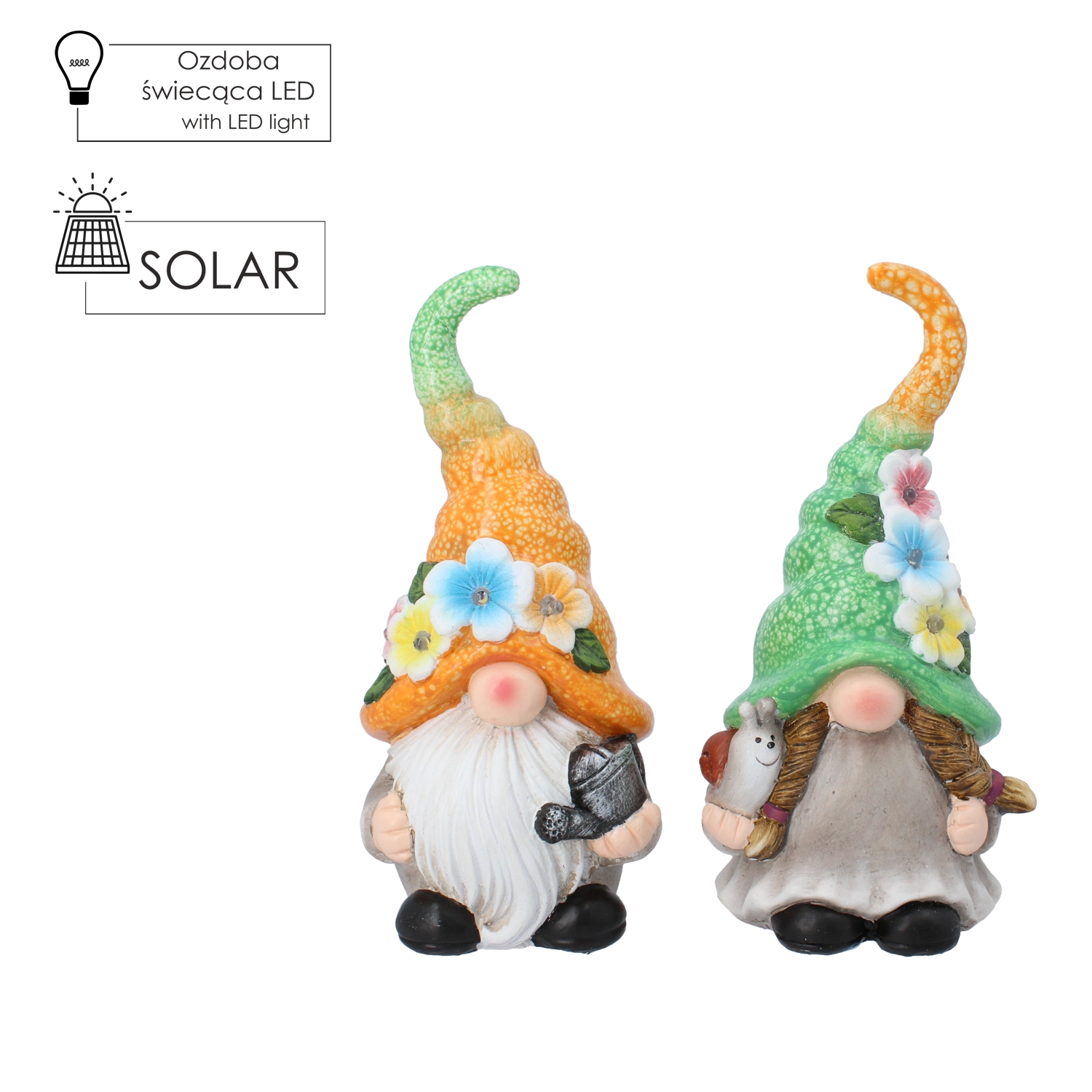 Vrtni škrat z LED osvetlitvijo – dekoracija deček ali deklica, komplet 2 kos