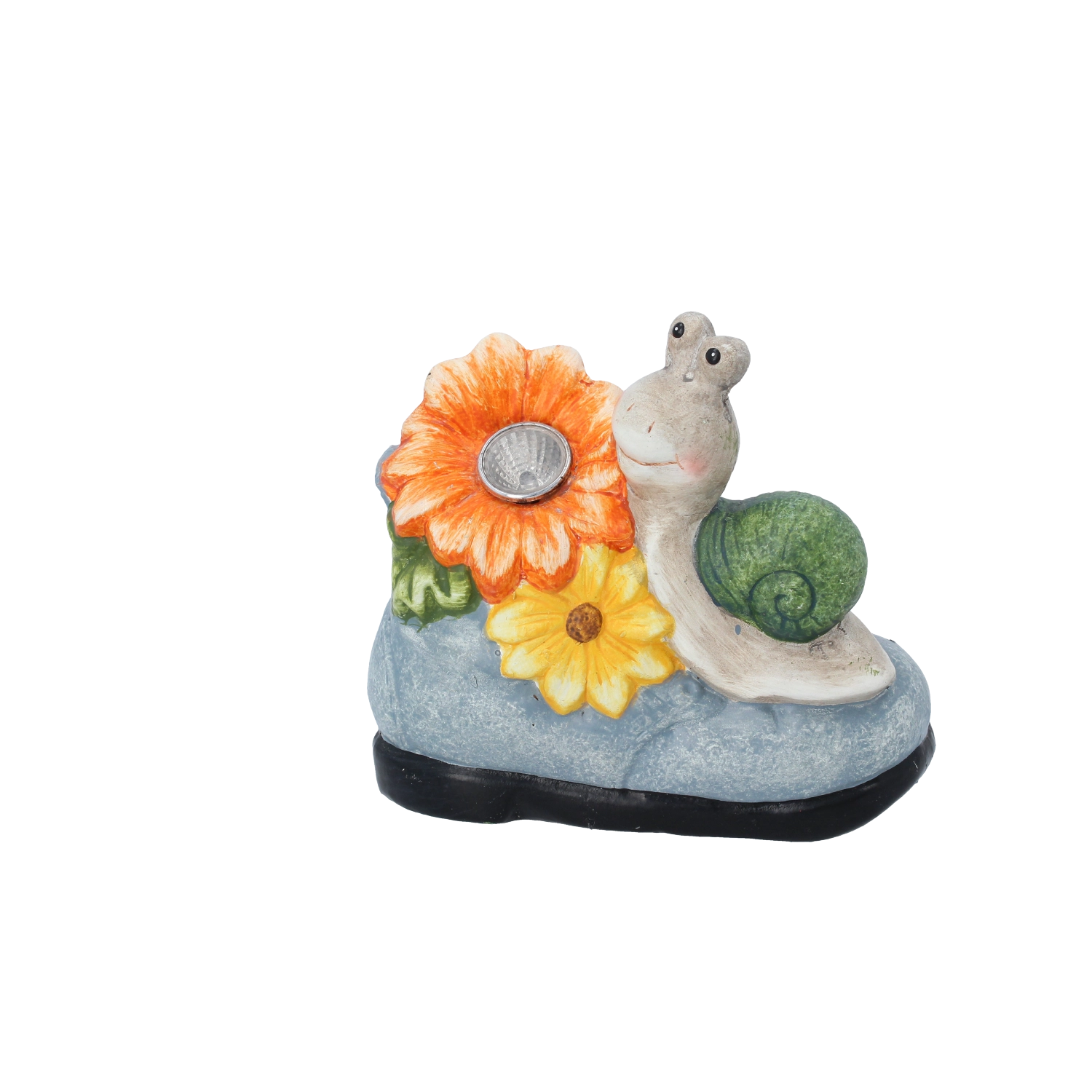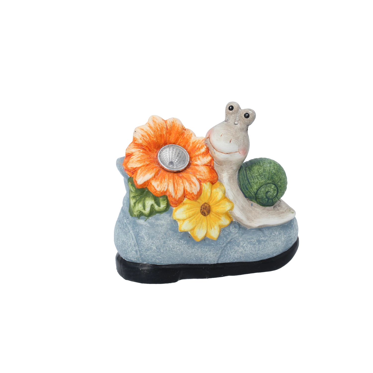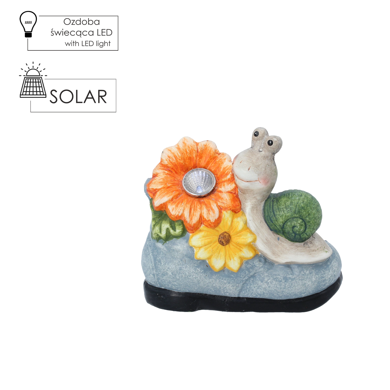 Ta dekorativna figurica polža s cvetlicami prinaša v zunanje prostore čarobno vzdušje, zlasti po temi, zahvaljujoč varčni LED svetlobi. Idealna je kot poudarek na gredicah, terasah, balkonih ali pri vhodu v hišo.