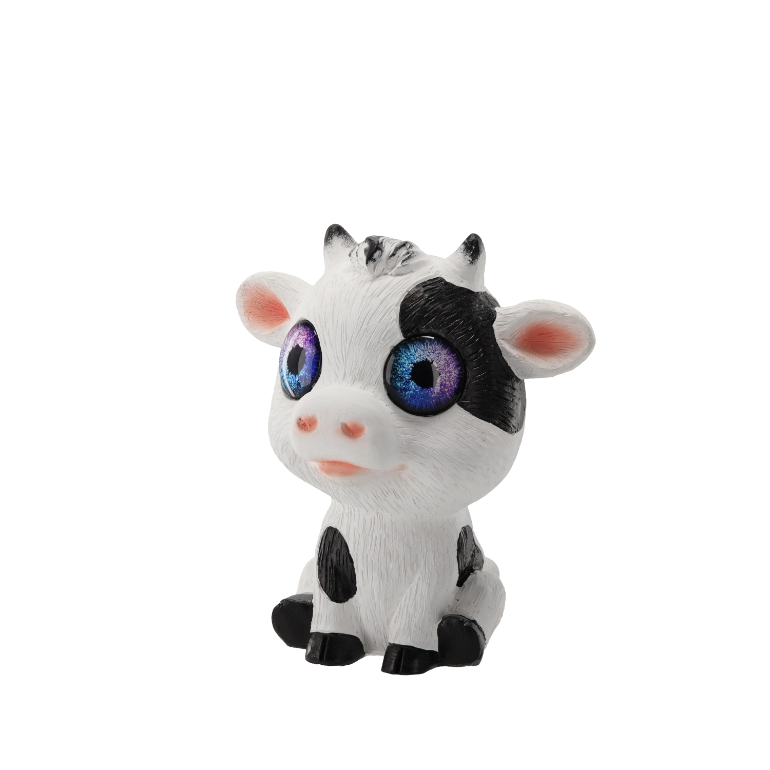 Ta oblikovalska figurica krave z merami 25 × 17,5 × 27,5 cm je idealna dekoracija za vrtove, cvetlične grede, terase ali vhodne prostore. Vgrajeni dve toplo beli LED diodi v očeh po mraku zagotovita nežno ambientalno svetlobo in poudarita čaroben videz dekoracije.