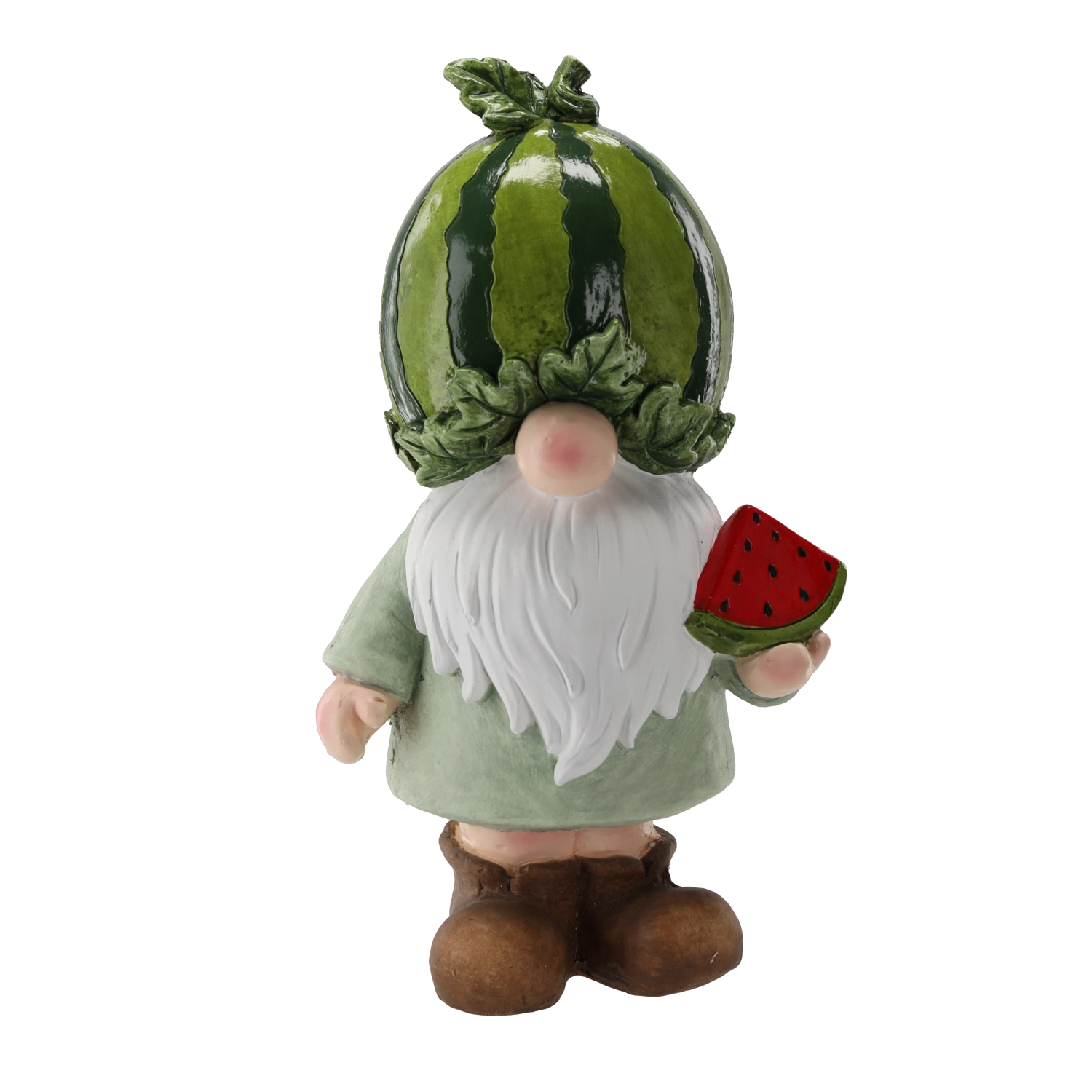 Ta očarljivi škrat z lubenično kapico in rezino lubenice v roki takoj pritegne pozornost. Zahvaljujoč kakovostnemu materialu MGO (magnezijev oksid s vlakni) je figurica čvrsta, stabilna in primerna za celoletno zunanjo uporabo. Sijoča, podrobno ročno poslikana površina poudari poletno vzdušje in doda vašemu zunanjemu prostoru edinstven značaj.