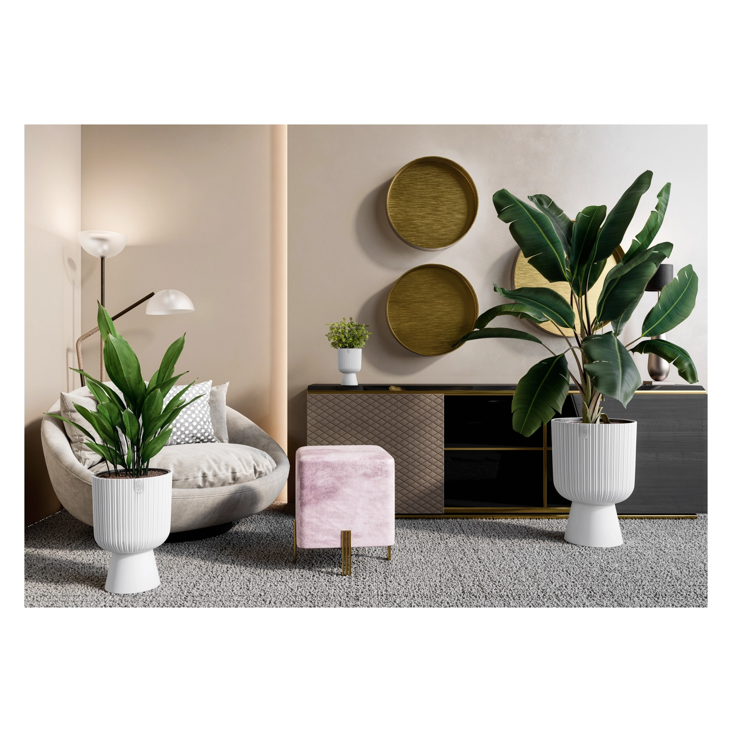 Cvetlični lonec KELI Mika združuje brezčasen videz in praktično izvedbo. Zaradi lahke in odporne plastike je z njim enostavno ravnati, mat bela barva in nežni navpični utori pa vsakemu prostoru dodajo čist, prefinjen videz. Razširjena osnova zagotavlja stabilnost tudi pri višjih rastlinah.