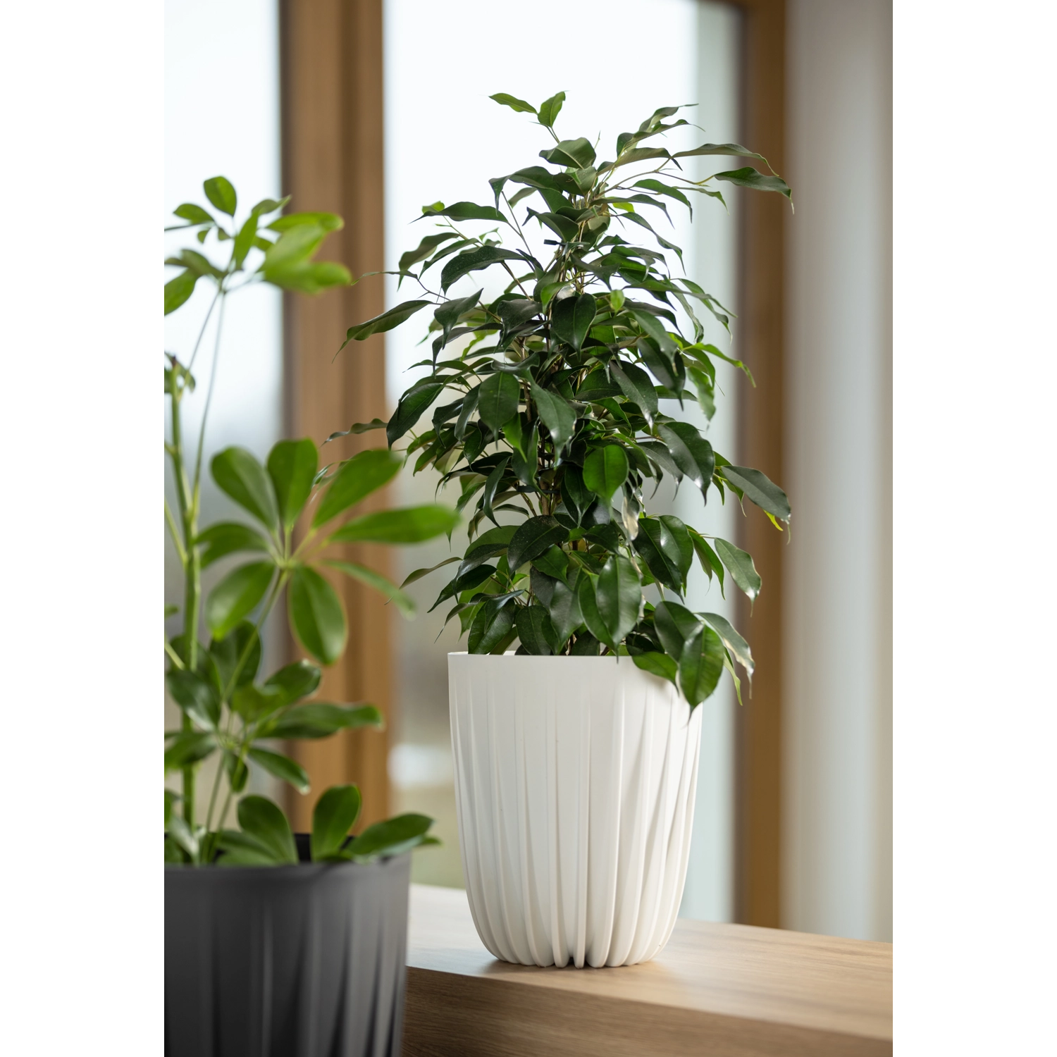 Cvetlični lonec Mira 30 cm bel združuje moderno estetiko in praktične lastnosti. Zahvaljujoč kakovostni reciklirani plastiki je izjemno trpežen in hkrati lahek, zato ga je enostavno prenašati in vzdrževati. Mat površina daje brezčasen videz in se odlično poda v dnevno sobo, na balkon, teraso ali vrt.