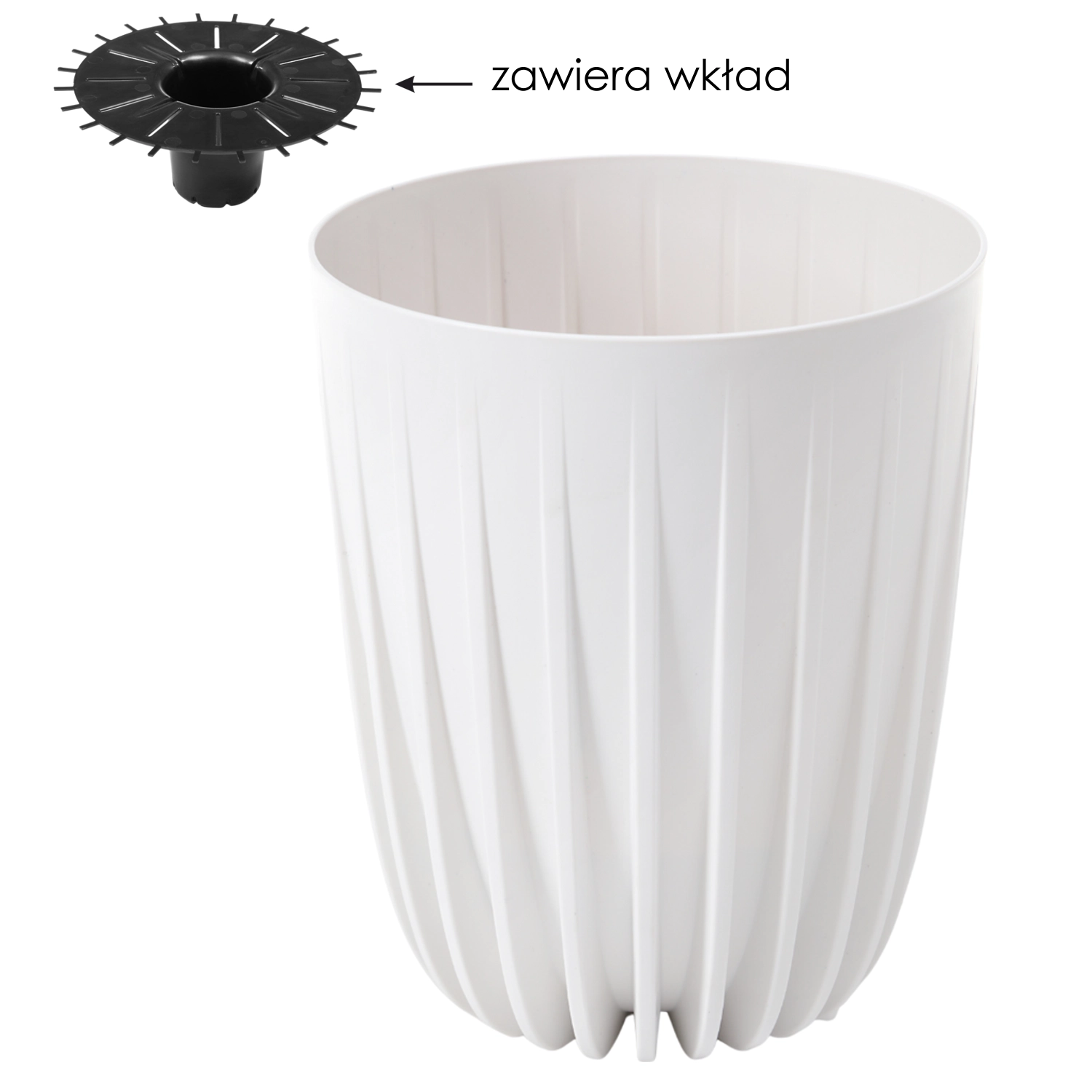 Vgrajen odstranljiv vložek olajša sajenje, pomaga ohranjati optimalno vlažnost substrata in spodbuja zdravo rast rastlin. Zaradi odpornosti na zmrzal in vremenske vplive je primeren za celoletno uporabo na prostem in v notranjosti.