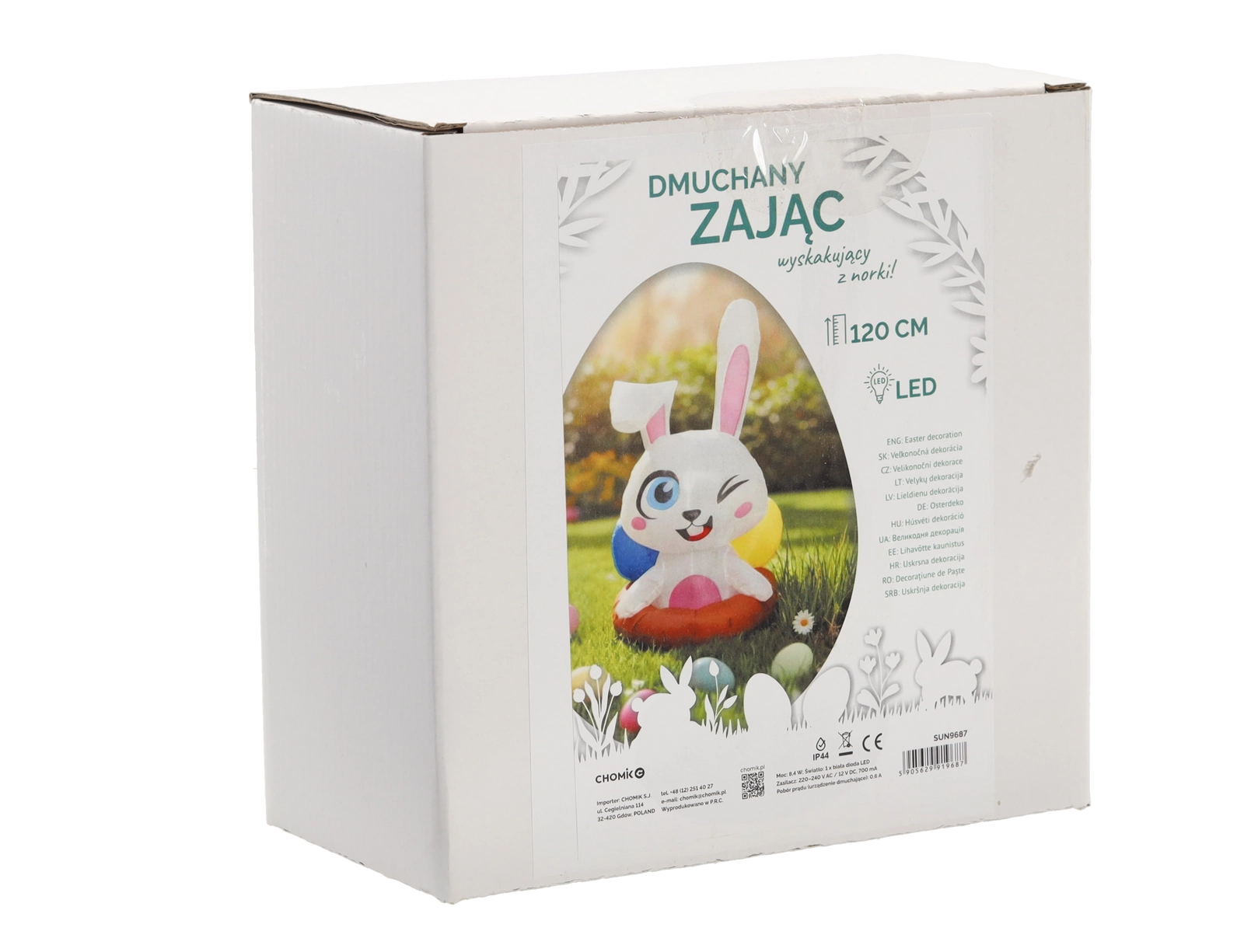 Ta vesel nafihnjen zajček, ki kuka iz rova, je idealen velikonočni okras za dom in vrt. Z vgrajeno belo LED lepo zasije po mraku ter pritegne pozornost otrok in odraslih. Lahka konstrukcija in priložena oprema omogočata hitro namestitev in stabilno pritrditev.