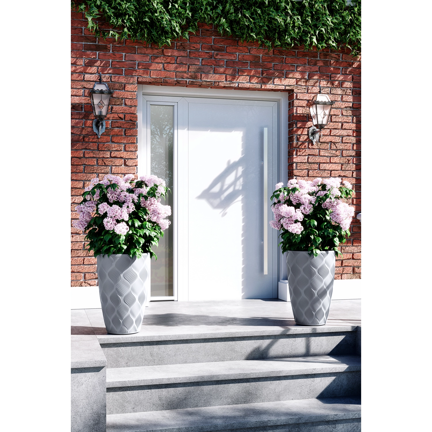 Lonec za rože FLOW Slim v razkošnem platinastem odtenku združuje moderen videz s praktičnimi podrobnostmi. Njegova 3D rebrasta površina z mat zaključkom deluje elegantno v vsakem okolju in hkrati poudarja naravno lepoto rastlin. Zaradi odpornih materialov je primeren tako za dnevno sobo kot za teraso ali balkon.