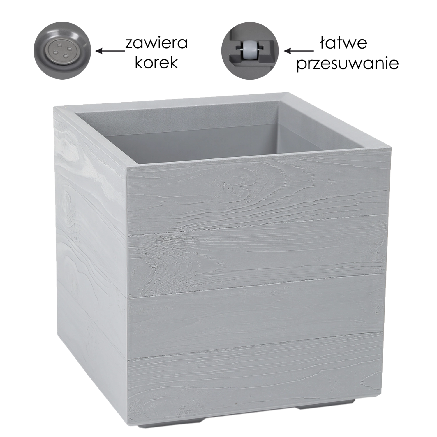 Praktična oprema vključuje integriran odtok z odstranljivim čepom za preprosto uravnavanje zalivanja ter kolesca, ki omogočajo udobno premikanje tudi popolnoma zasajenega lonca. Idealno za balkone, terase in dnevne prostore.
