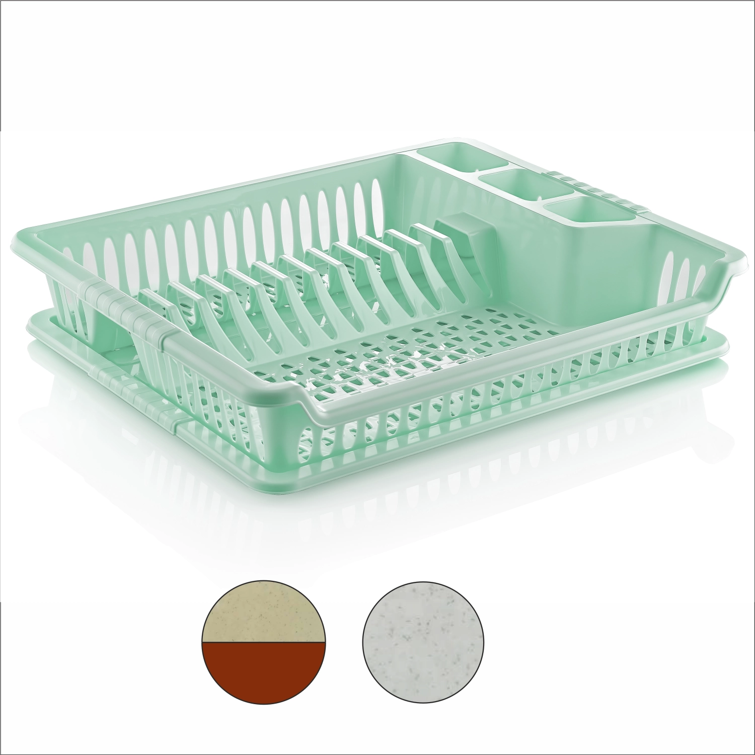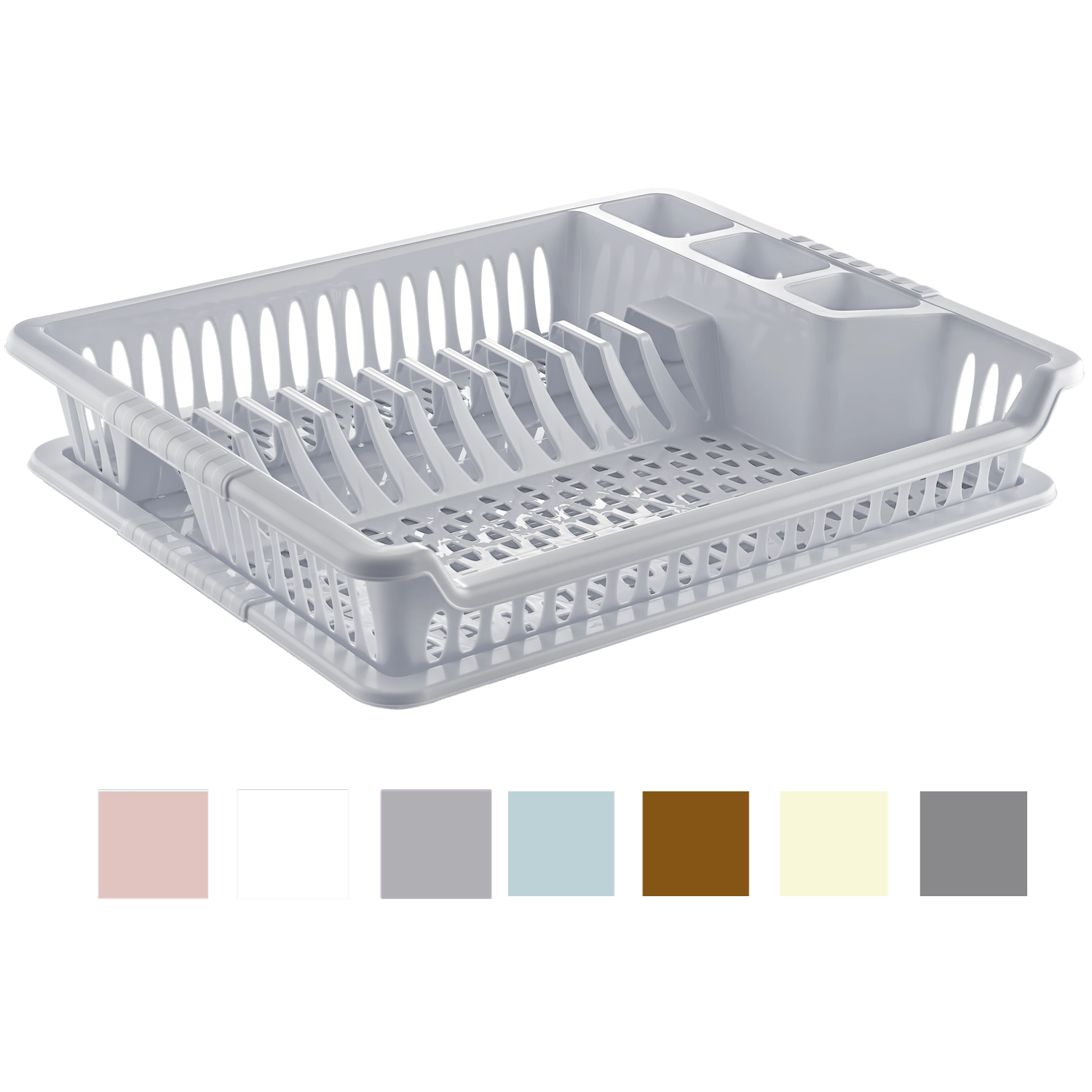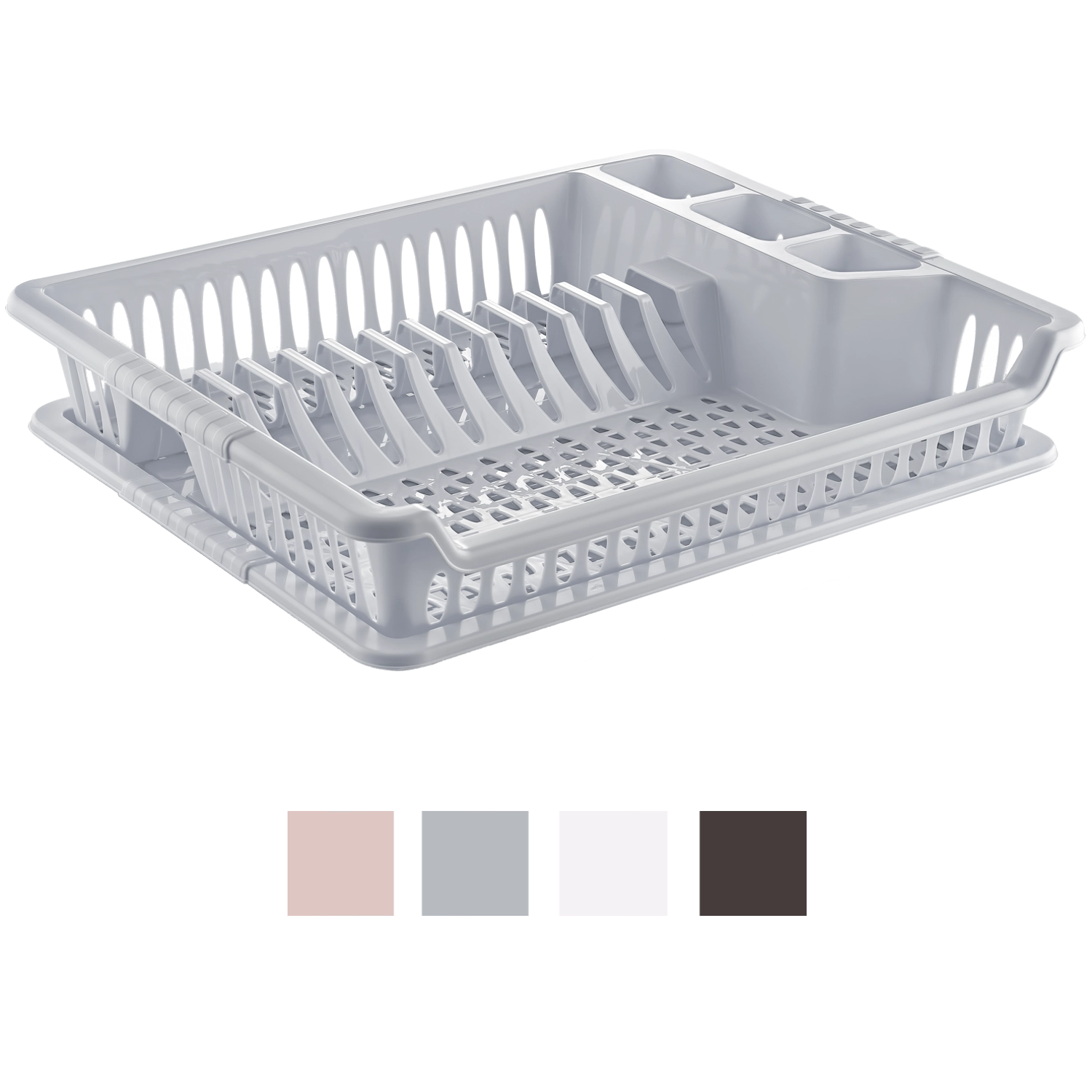 Odkapljalnik za posodo VIOLET s praktičnim pladnjem zagotavlja učinkovito sušenje brez kapljic na delovni površini. Zahvaljujoč kompaktnim meram 37 × 46 × 8,5 cm se prilega večini kuhinjskih pultov in hkrati nudi dovolj prostora za vsakodnevno posodo. Odporna plastika se enostavno čisti in zagotavlja dolgo življenjsko dobo.
