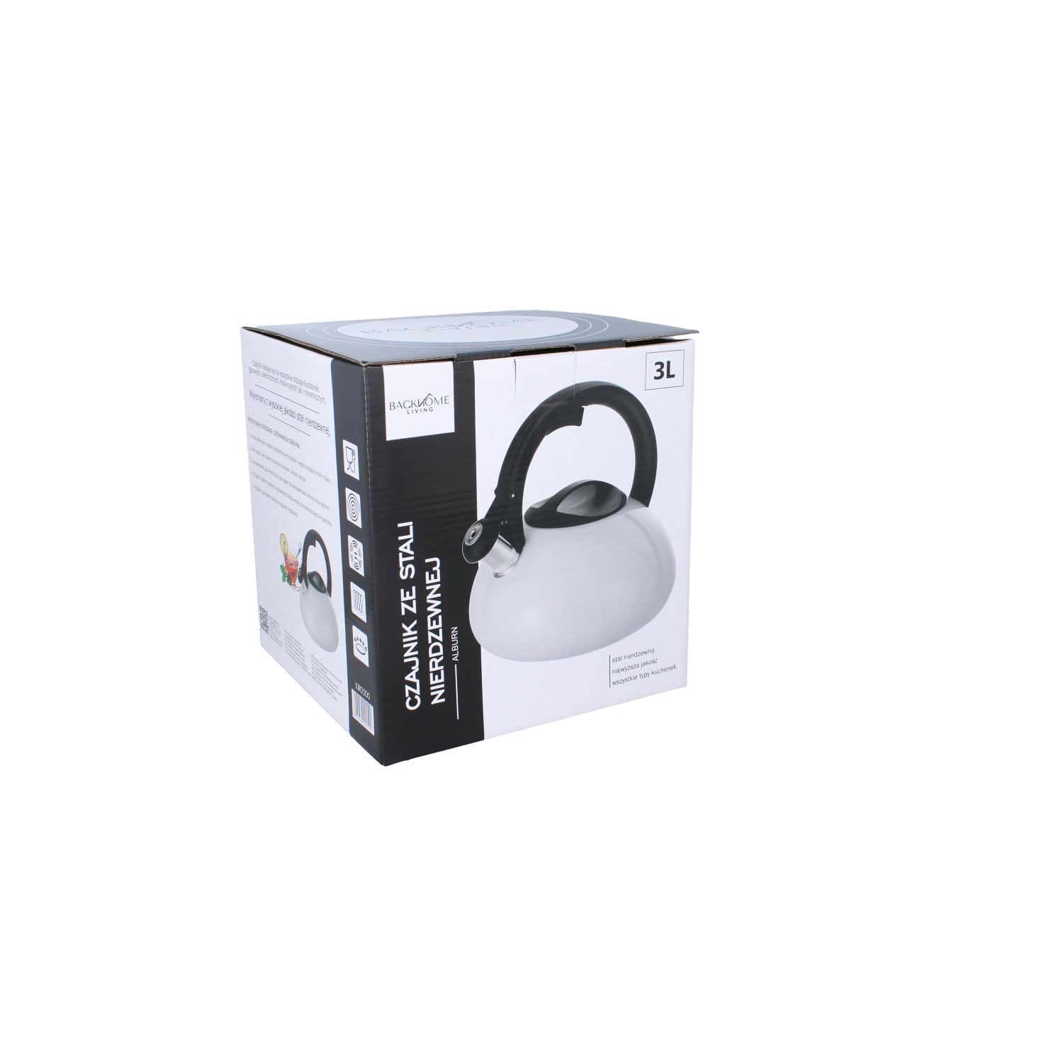 Elegantni nerjavni grelnik vode s prostornino 3,0 l v prefinjeni beli barvi s črnim ročajem in žvižgom. Ponuja odporno nerjavno ohišje, hitro segrevanje zahvaljujoč dnu iz jekla 430, udoben najlonski ročaj in varen žvižgač ustnik. Notranja površina z glass powder olajša vzdrževanje in zagotavlja dolgo življenjsko dobo.