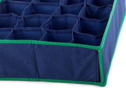 Ta praktičen razdelilnik ponuja enostaven način, kako obdržati vaše spodnje perilo v popolnem redu. Njegova konstrukcija omogoča učinkovito organizacijo tudi v najmanjših prostorih, njegovo stabilnost zagotavljajo stranske ojačane stranice. Poleg tega, ob daljšem shranjevanju ali potovanju, se ga lahko zloži tako, da zavzame minimalno prostora.