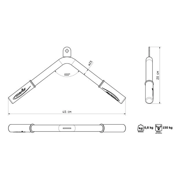 Dvignite svoj trening rok na višjo raven s tricepsnim adapterjem MARBO. Robusten okvir s profilom 40 × 40 mm in praktična dolžina 45 cm zagotavljata stabilnost in udobje za natančno izvedbo vaj. Zahvaljujoč premeru oprijema 25 mm adapter odlično sede v dlan in zmanjšuje drsenje.