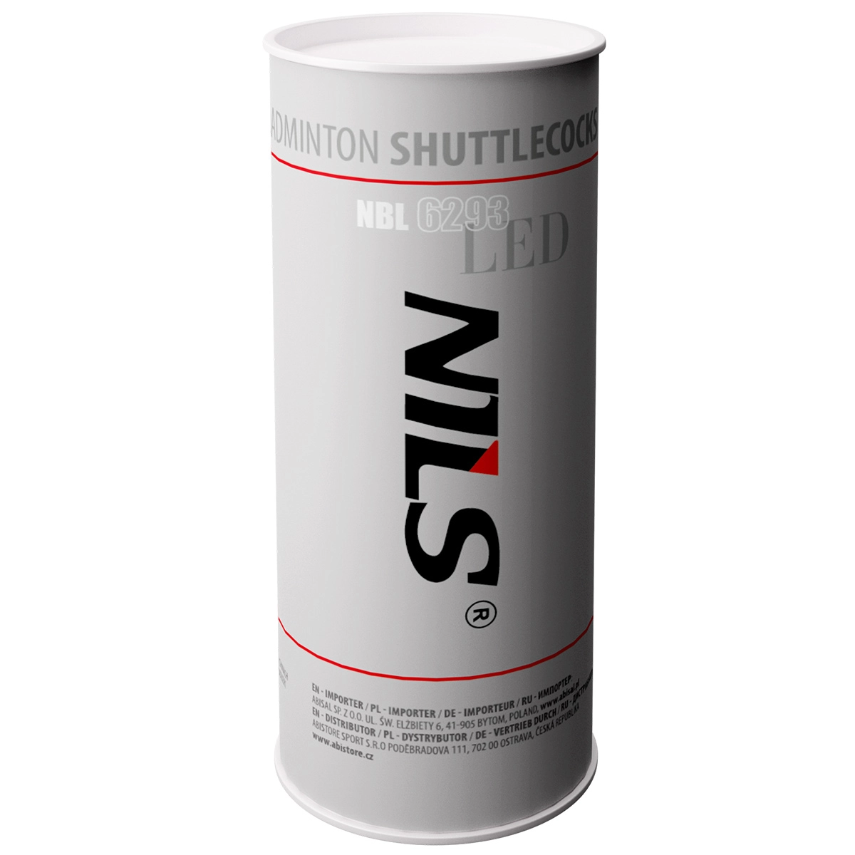 Badmintonske žogice NILS s svetlečo LED diodo prinašajo zabavo tudi po temi. Zahvaljujoč trpežnemu najlonskemu košarčku in uravnoteženi osnovi iz umetnega pluta omogočajo zanesljiv, predvidljiv let in daljšo obstojnost v primerjavi s pernatimi žogicami. LED modul, napajan z gumbasto baterijo, zagotavlja odlično vidnost žogice.