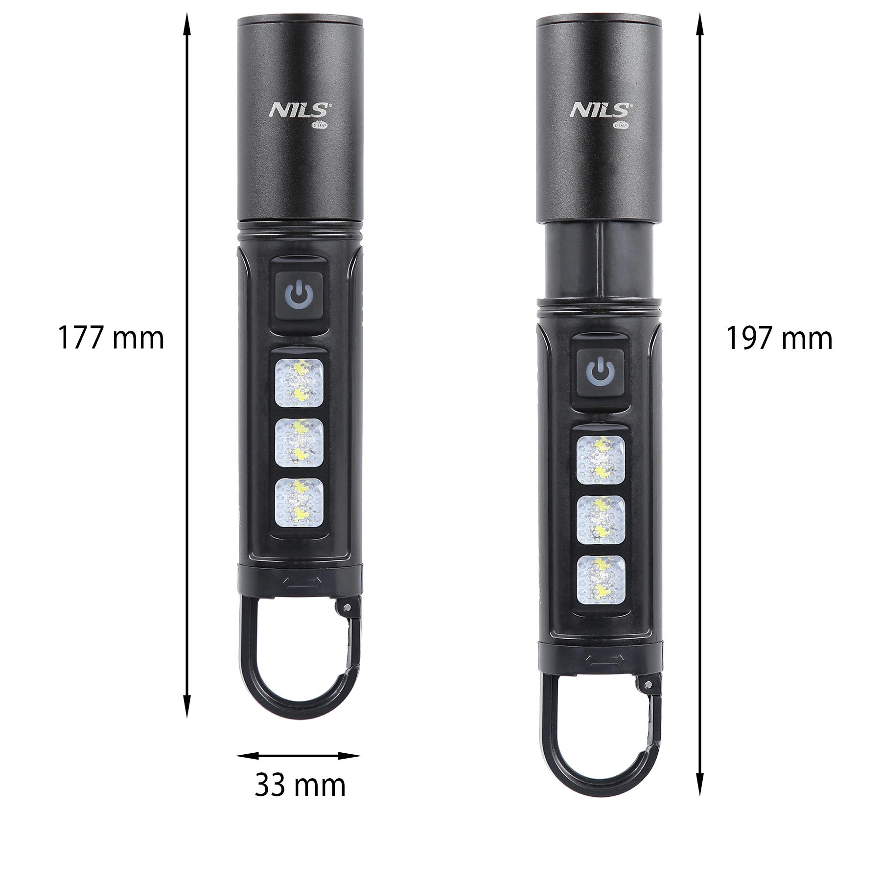Univerzalna svetilka za delo, kampiranje in nujne razmere. Glavna dioda P50 zagotavlja do 800 lumnov z izbiro načinov 100 %, 40 % in stroboskop. Teleskopska glava spreminja izhod od ozkega daljnosežnega snopa do širokega razpršila, medtem ko priloženi difuzor svetilko spremeni v praktično stropno/šotorsko svetilo.