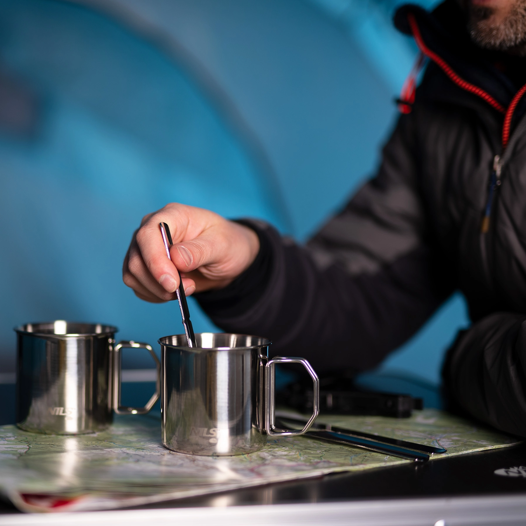 Praktični zložljivi ročaji prihranijo prostor v nahrbtniku in omogočajo udoben oprijem tudi pri vročih napitkih. Vsaka skodelica tehta le 80 g, zato je celoten komplet izjemno lahek in enostaven za pakiranje, idealen za peš pohode in daljše trekinge.