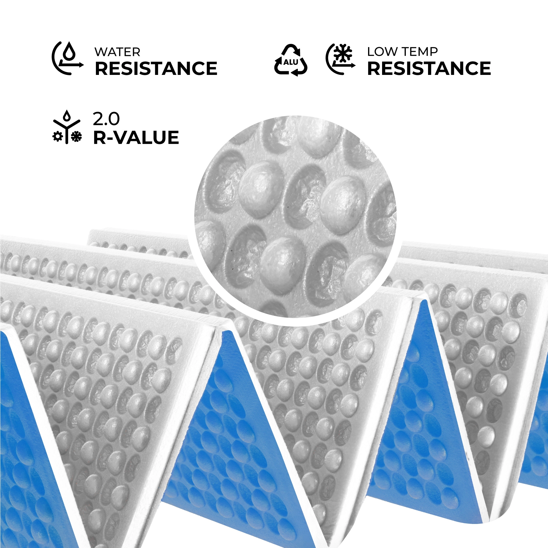 - Odlična izolacija zahvaljujoč peni XPE in aluminijskemu sloju (R-Value 2.0)