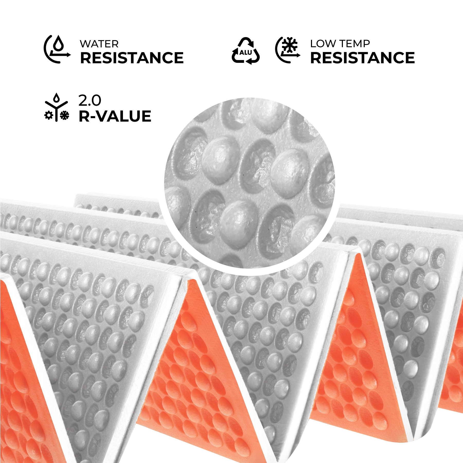 S to zložljivo penasto podlogo dobite zanesljivo osnovo za udoben spanec na prostem. Tehnična pena XPE je lahka, odporna proti deformacijam in nevpijajoča, zato podloga ostane suha in pripravljena na akcijo tudi v zahtevnem terenu. Aluminijasta plast učinkovito odbija toploto nazaj k telesu ali izolira pred mrazom tal, odvisno od tega, s katero stranjo jo položite.