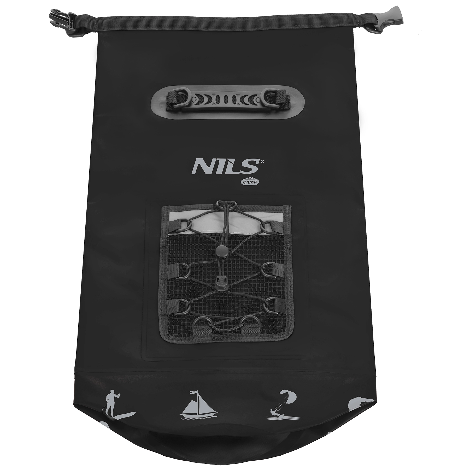 Zanesljiva vodna in outdoor vreča NILS Camp s prostornino 25 l zaščiti vaše stvari pred vodo, blatom in vetrom. Zahvaljujoč vodotesnemu materialu, rolajočemu zapiranju in odstranljivim naramnicam ohranja opremo suho ter omogoča udobno nošenje na hrbtu ali v roki. Praktičen mrežast žep za drobnarije in kompaktna oblika naredita vrečo idealnega sopotnika za na vodo, v kamp ali na izlete.