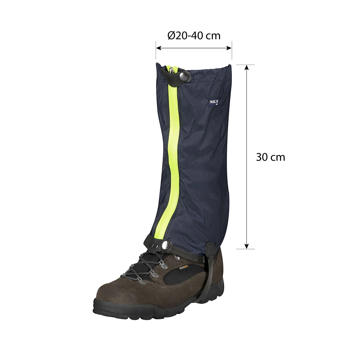 NILS Camp NC1770 so zanesljive pohodniške gamaše, ki zaščitijo vaše noge in obutev pred vlago, snegom, blatom in nečistočami. Izdelane so iz lahkega in trpežnega materiala, ki je nezahteven za vzdrževanje in kos tudi zahtevnejšim gorskim razmeram. Neon zelena zadrga hkrati deluje kot odsevni varnostni element za boljšo vidnost.