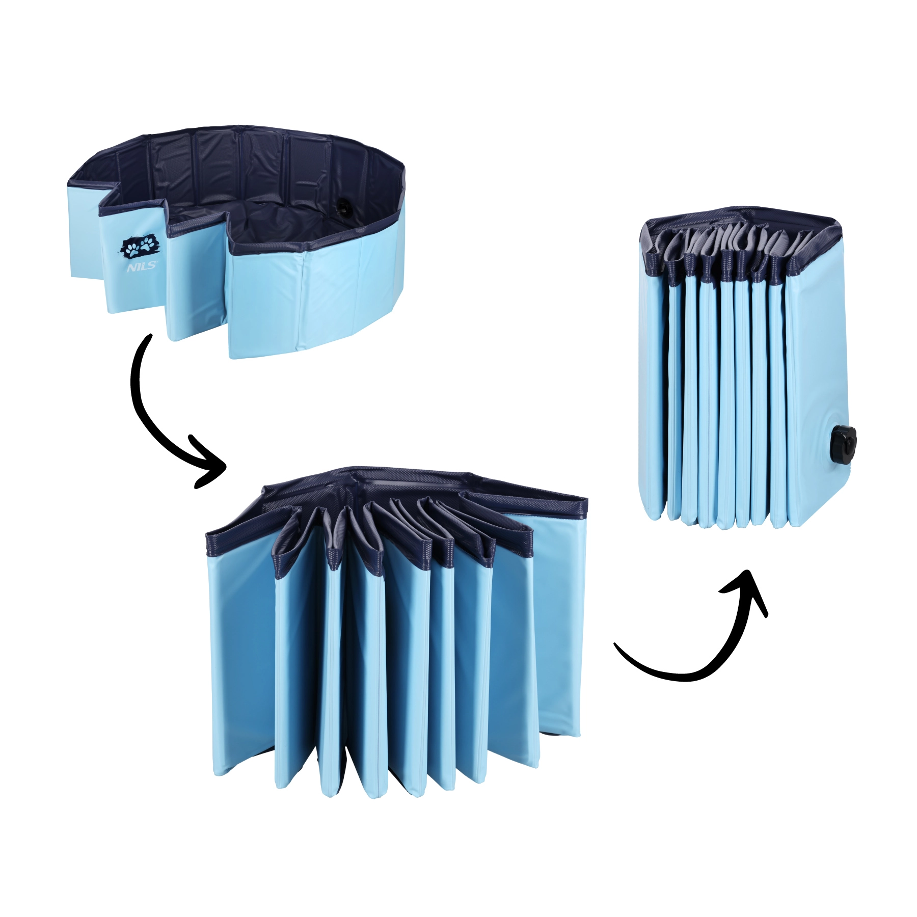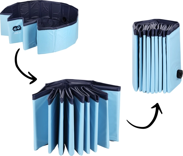 Privoščite svojemu ljubljenčku poletno osvežitev z zložljivim pasjim bazenom NILS. Ta vzdržljiv bazen iz PVC z ojačanimi MDF paneli ponuja stabilno konstrukcijo, enostavno postavitev brez napihovanja in hitro izpraznitev zahvaljujoč izpustnemu ventilu. Idealno za male in srednje pse – premer 100 cm, višina 30 cm in prostornina 235 l za udobno čofotanje in hlajenje.