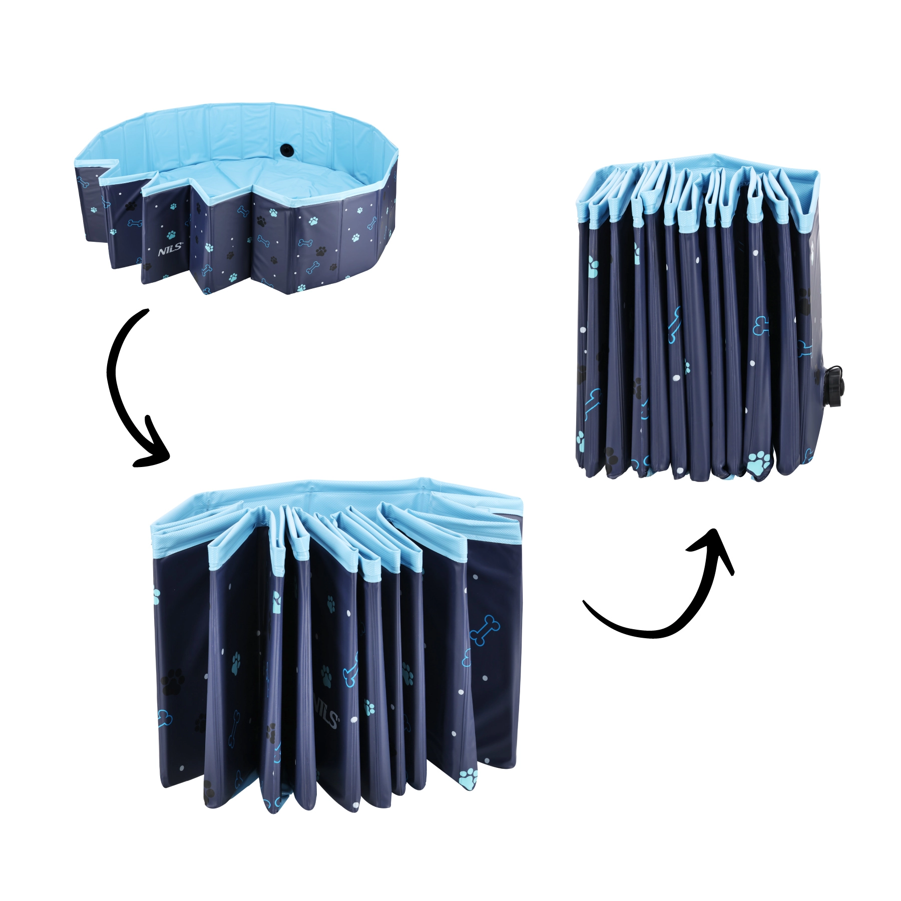 Zložljiv pasji bazen NILS je idealen za osvežitev po sprehodu ali za poletne vodne igre na vrtu, terasi ali balkonu. Premer 120 cm nudi dovolj prostora tudi za večje pse, hkrati pa je bazen še vedno kompakten in enostavno prenosljiv. Zahvaljujoč trpežnemu PVC-ju in ojačanim MDF panelom je bazen stabilen, čvrst in pripravljen za vsakodnevno uporabo.