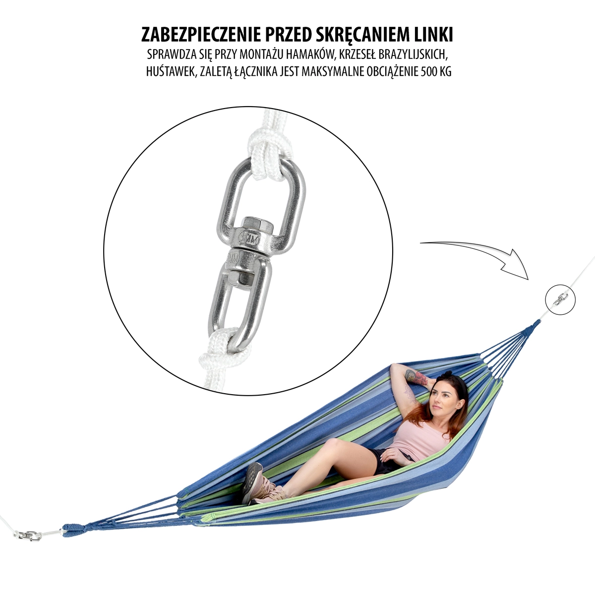 Vrtljivo uho NILS Camp učinkovito preprečuje zvijanje vrvi in s tem poveča udobje ter varnost pri guganju. Idealno je za viseče stole, viseče mreže in drugo obešeno opremo, kjer je zahtevano tekoče vrtenje brez obremenjevanja vozlov in pritrdilnih elementov.