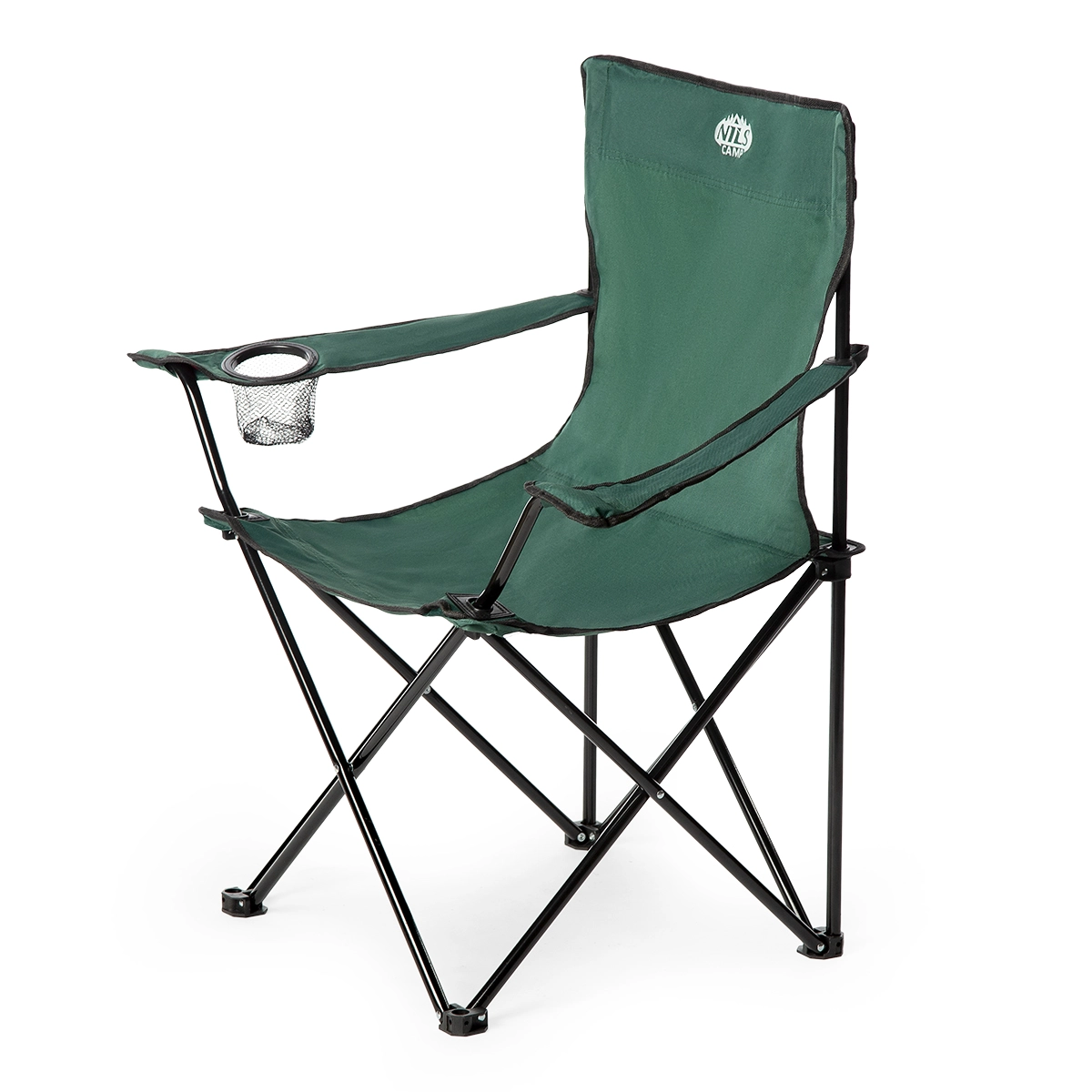 Lahek in trpežen zložljiv stol NILS CAMP je idealen za kampiranje, ribolov, festivale in vrt. Ponuja čvrsto jekleno konstrukcijo, prevleko Oxford 600D, odporno na vremenske vplive, nastavljiva naslonjala za roke in priročen držalo za pijačo. Preprosto se zloži in zahvaljujoč nosilnosti 110 kg zagotavlja udobno in stabilno sedenje kjer koli na prostem.