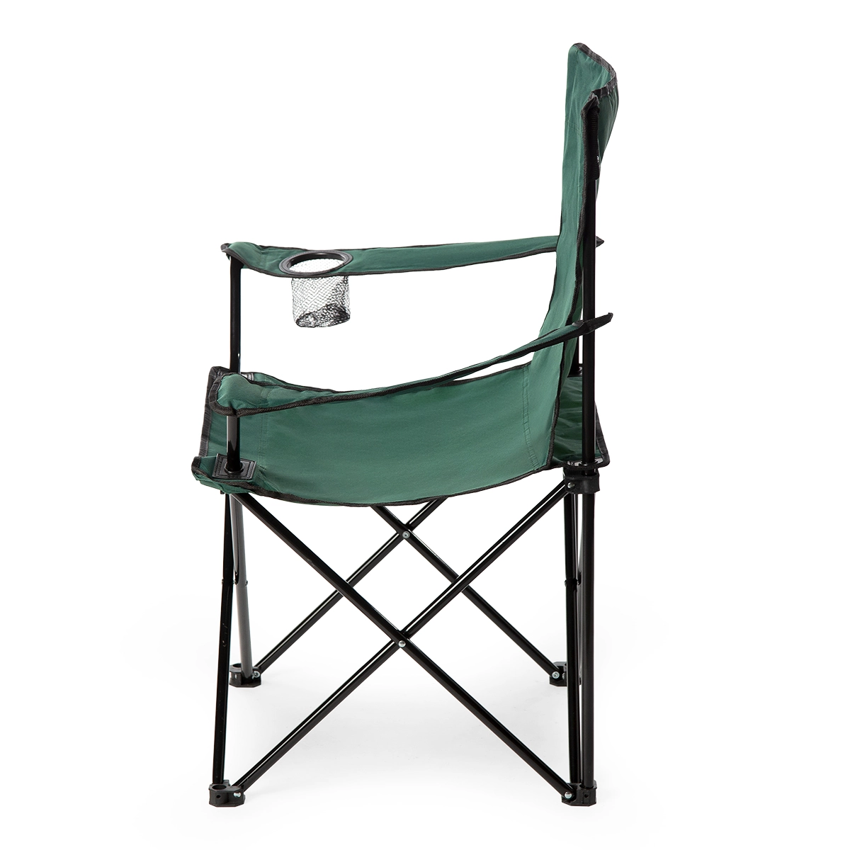 Za večje udobje ima stol nastavljiva naslonjala za roke in integrirano držalo za pijačo za steklenico ali visok kozarec. Zahvaljujoč hitremu zlaganju in nizki teži je popoln za potovanja, piknike in športne dogodke.
