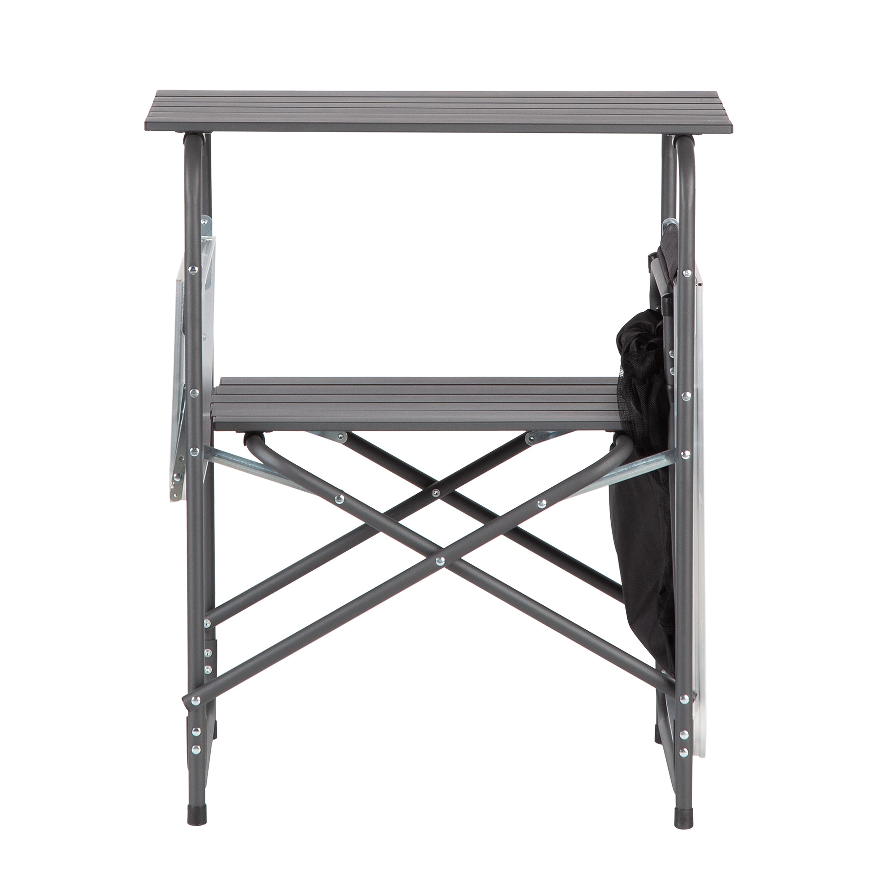 Dve zložljivi delovni plošči nudita prostor za pripravo in serviranje obrokov. Ko morate prihraniti prostor, ju preprosto zložite – omara se občutno zmanjša in jo zlahka pospravite v priloženo torbo z ročajem. Nedrseče nogice zagotavljajo stabilnost tudi na manj ravnih podlagah.