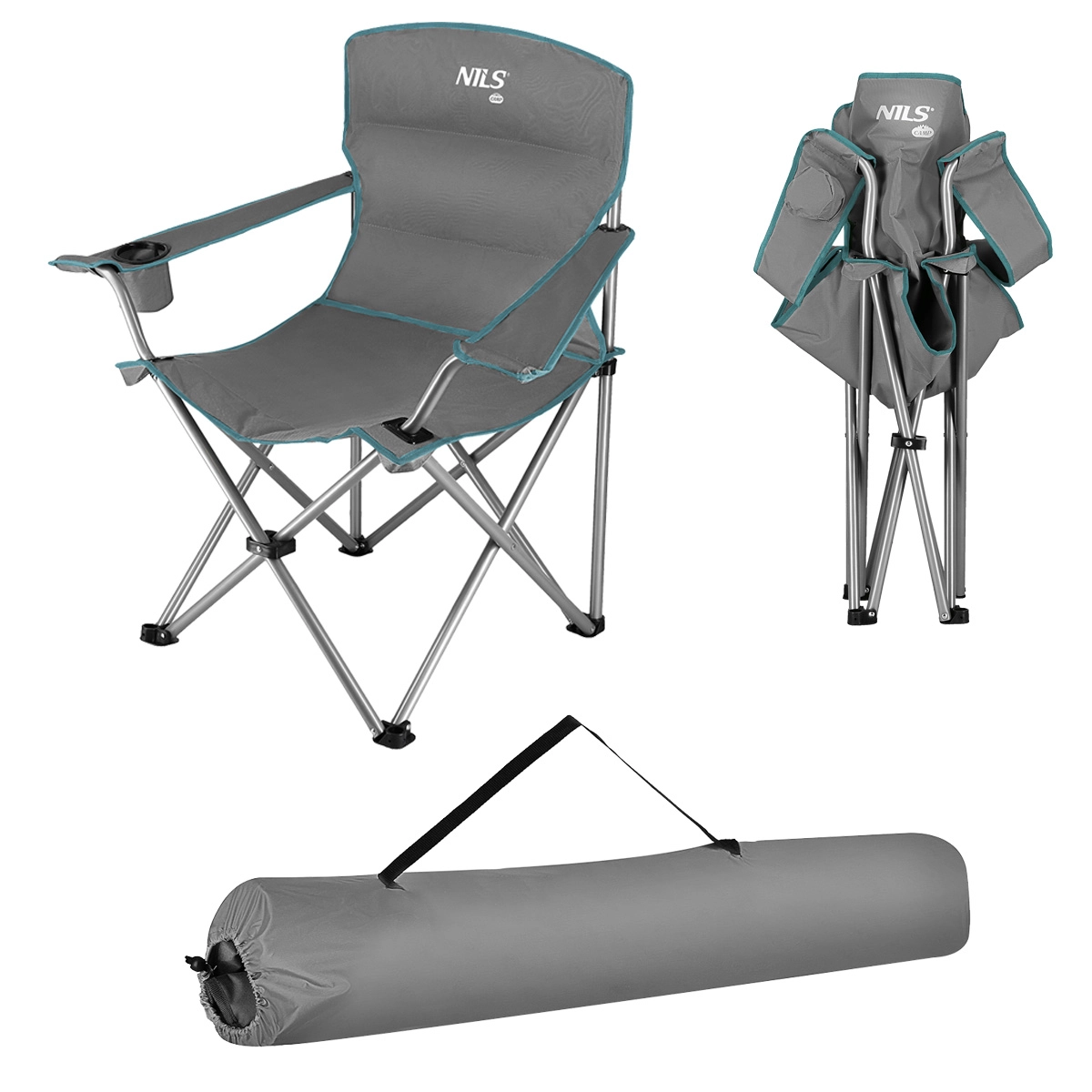 Uživajte v udobju kjerkoli v naravi. Zložljiv stol NILS Camp združuje robustno jekleno ogrodje iz cevi premera 22 mm in dvoslojno prevleko iz tkanine Oxford 600D za visoko odpornost proti obrabi in vremenu. Plastične ojačitve na obremenjenih mestih in kvadratne nogice povečujejo stabilnost ter preprečujejo ugrezanje v mehak teren.