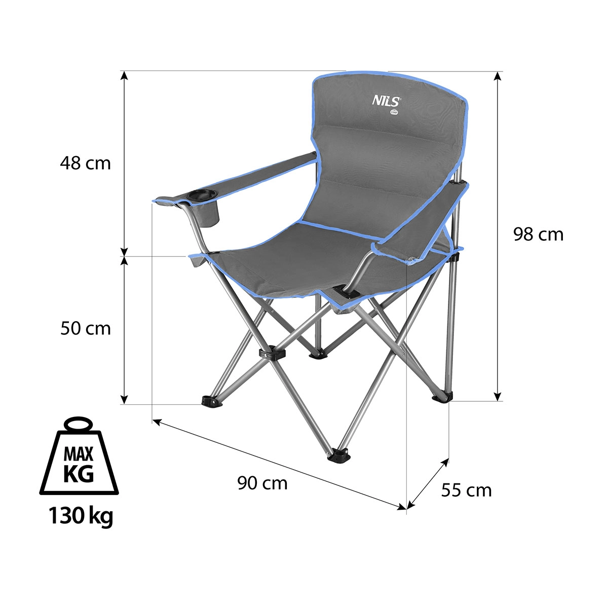 Vzdržljiv in udoben kamping stol NILS Camp v sivo-modri barvi ponuja trdno jekleno konstrukcijo, prevleko Oxford 600D, nosilnost do 130 kg in praktičen držalo za pijačo. Zahvaljujoč hitremu zlaganju in priloženemu vrečastu etuiju s trakom je idealen za k vodi, ribolov, festivale in kampiranje.