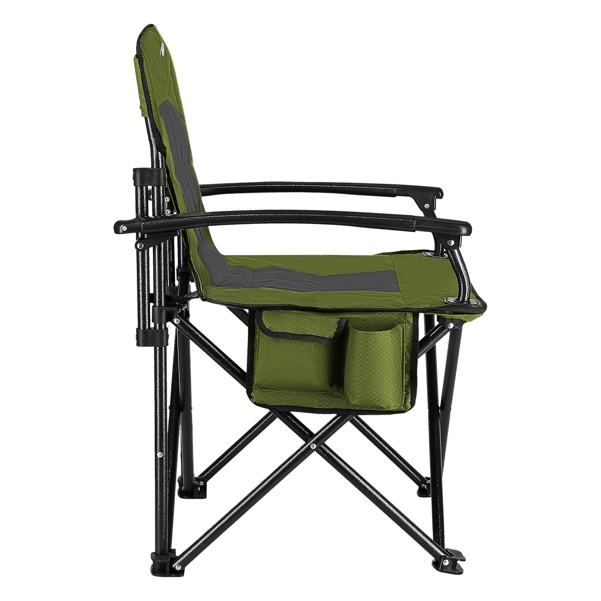 Robusten jeklen okvir iz cevi premera 19 mm, zakovičeni spoji in široki čevlji nog zagotavljajo stabilnost tudi na mehkejši podlagi. Stol ima nosilnost 120 kg in višino sedeža 49 cm za udobno sedenje. Zahvaljujoč hitrému zlaganju in čvrstemu transportnemu vreču z naramnico ga zlahka vzamete s seboj na pot.