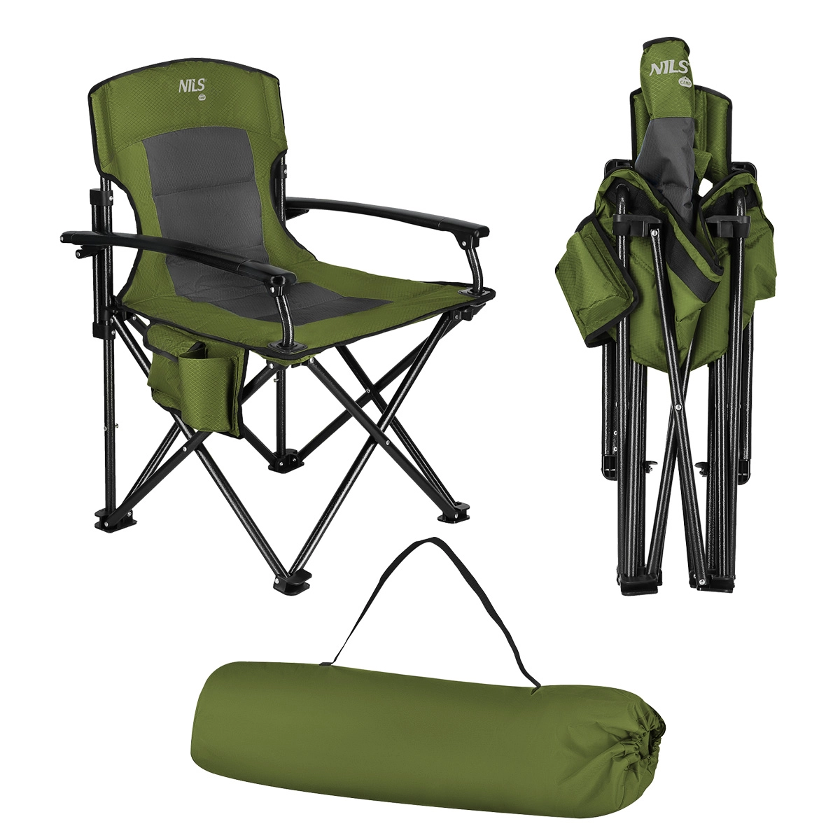Uživajte v udobju kjerkoli v naravi. Zložljiv stol NILS Camp je oblazinjen z dvoslojnim poliestrom Oxford 600D z mehkim polnilom, zato boste udobno sedeli tudi dlje časa. Naslonjala za roke v polni velikosti olajšajo usedanje in vstajanje, ob strani pa najdete okrogel držalo za pijačo in žep z zavihkom za telefon, denarnico ali druge malenkosti.