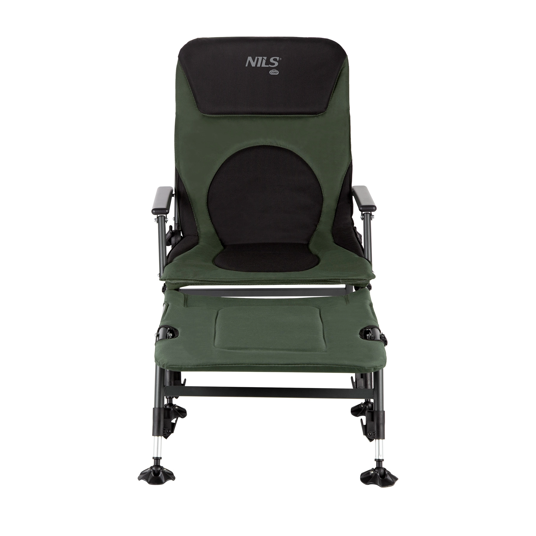 Uživajte v maksimalnem udobju ob vodi z ribiškim stolom s podnožnikom NILS CAMP NC1802. Trpežna konstrukcija, oblazinjen prevlek 600D Oxford in tekoče nastavljanje v sproščeno pozicijo zagotavljajo udobje v vsakem terenu. Zahvaljujoč nastavljivim nogam s širšimi petami je stol stabilen tudi na neravnem bregu, jeklen okvir z nosilnostjo do 180 kg pa zagotavlja dolgo življenjsko dobo. Enostavno se zloži in prenaša, zato je idealen za ribolov, kampiranje in počitek v naravi.