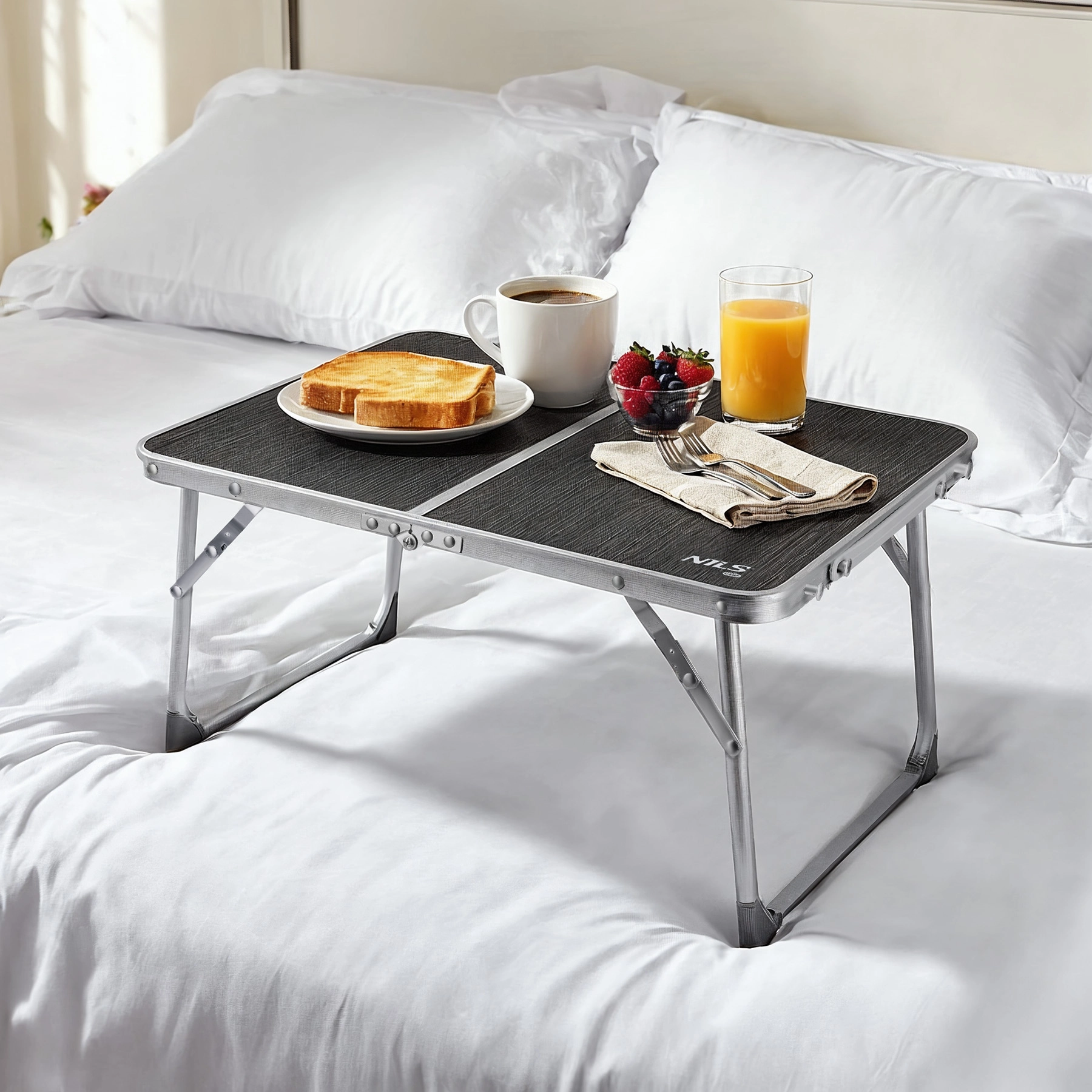 Odlična kot kamp mizica, piknik pladenj ali zajtrkovalna mizica za v posteljo.